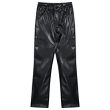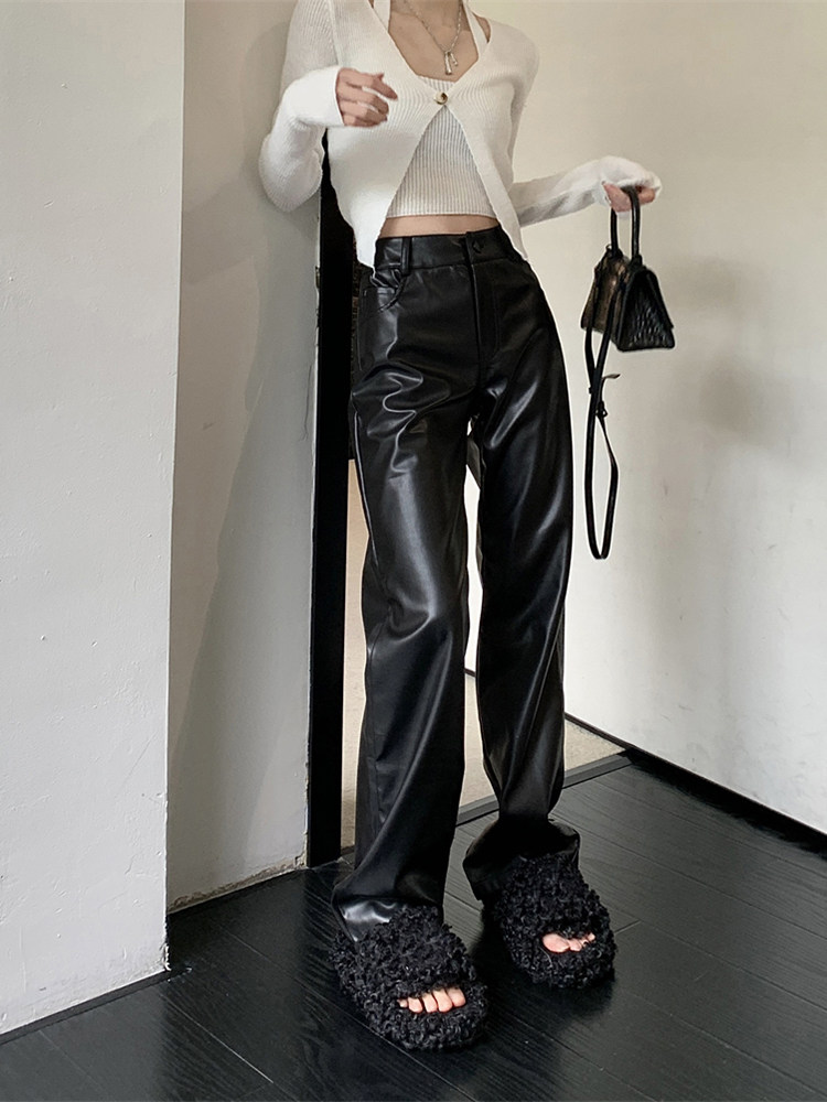 Черные полиуретановые весенние штаны, повседневные брюки, свободный прямой крой, высокая талия