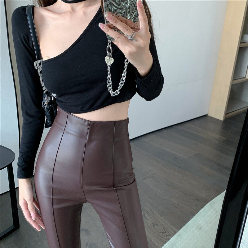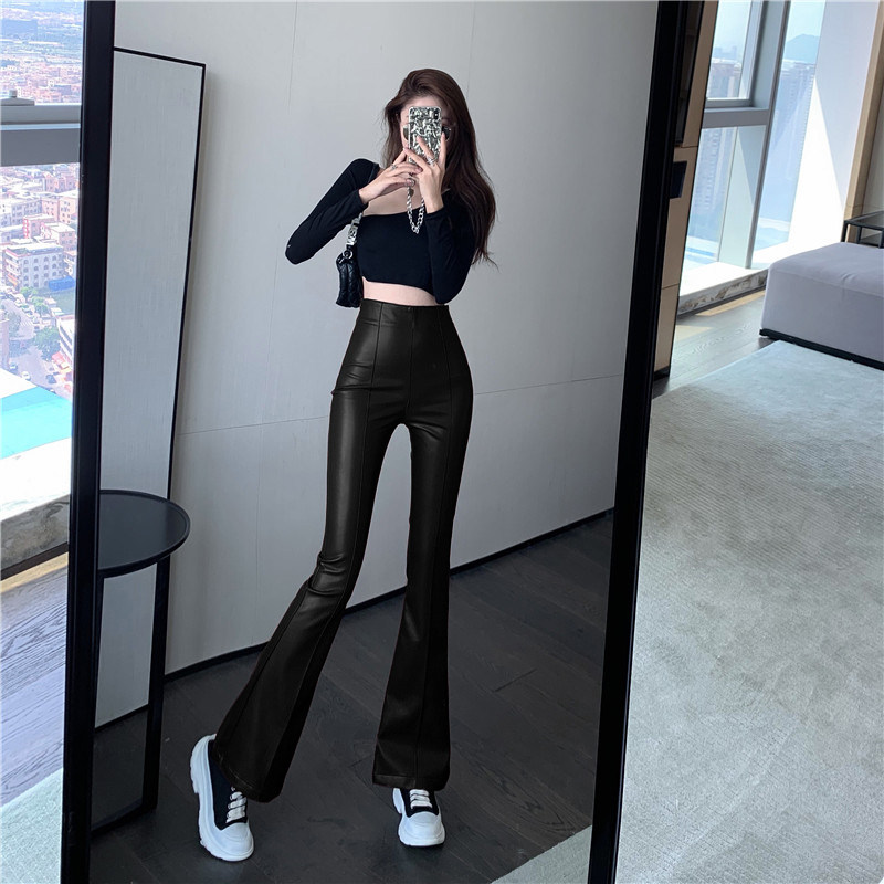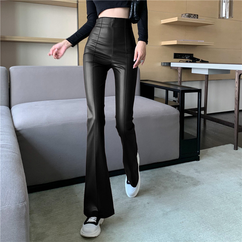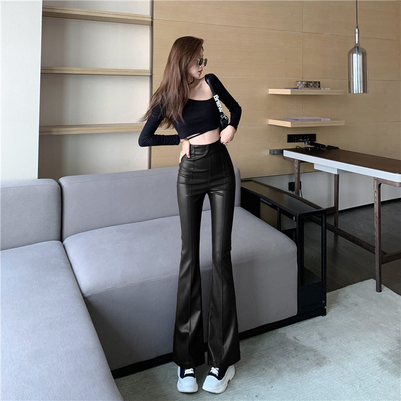 Черные осенние приталенные штаны, мегафон, высокая талия, яркий броский стиль, свободный прямой крой