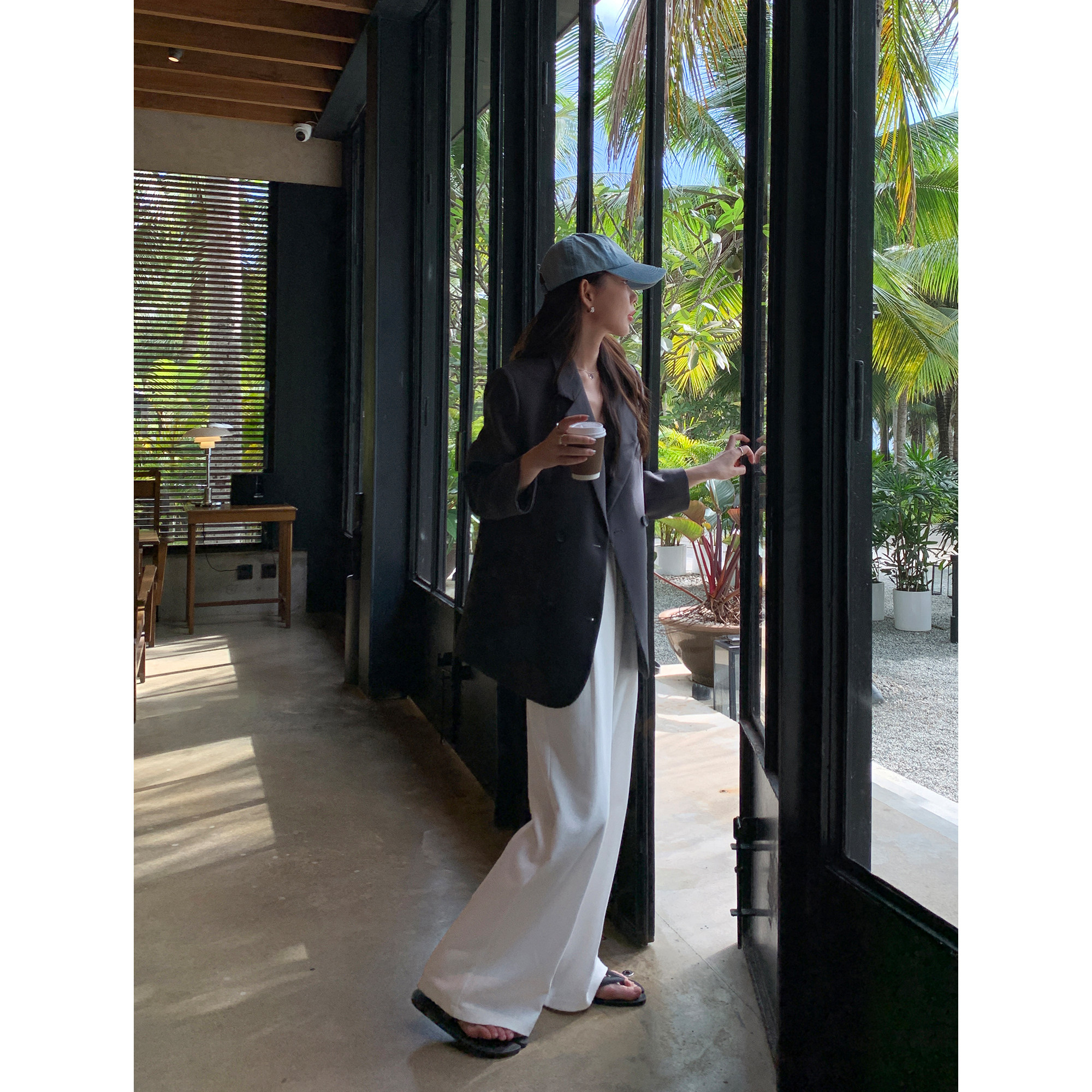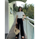 Белые цветные штаны, черный костюм, изысканный стиль, свободный прямой крой