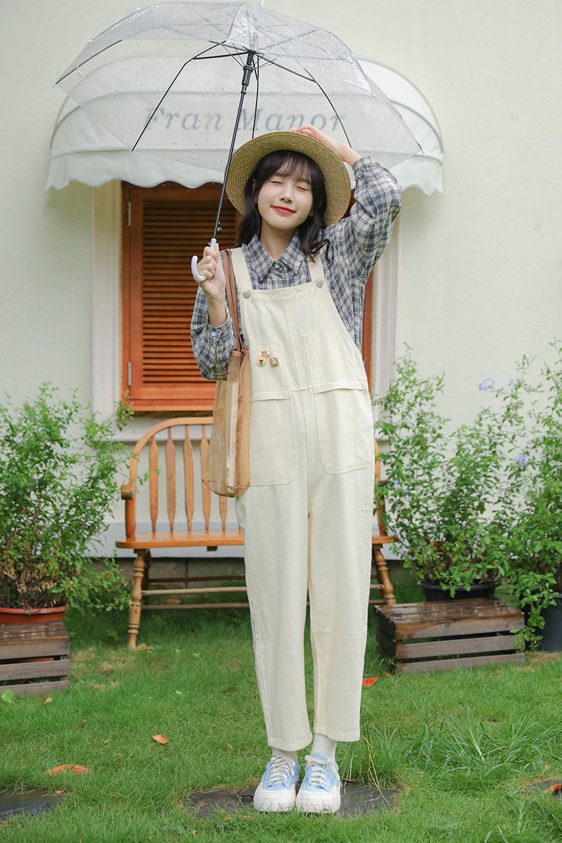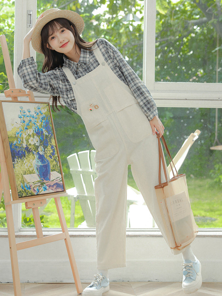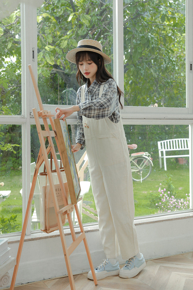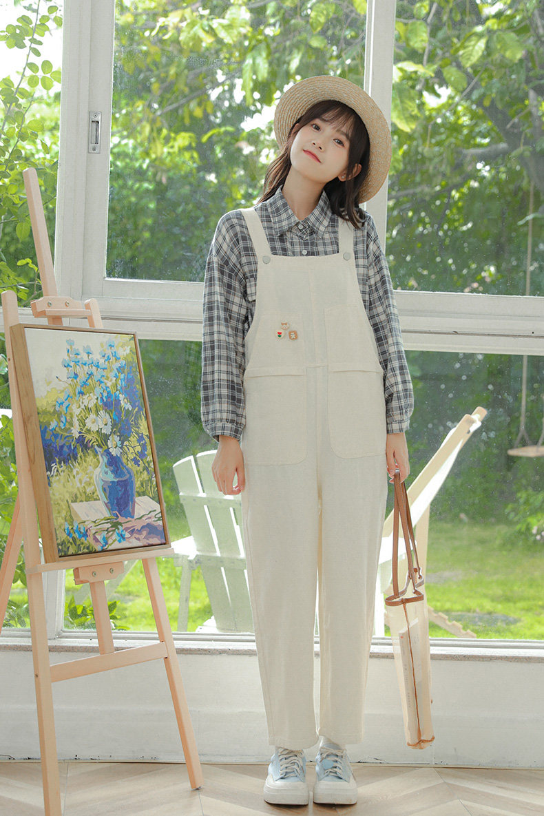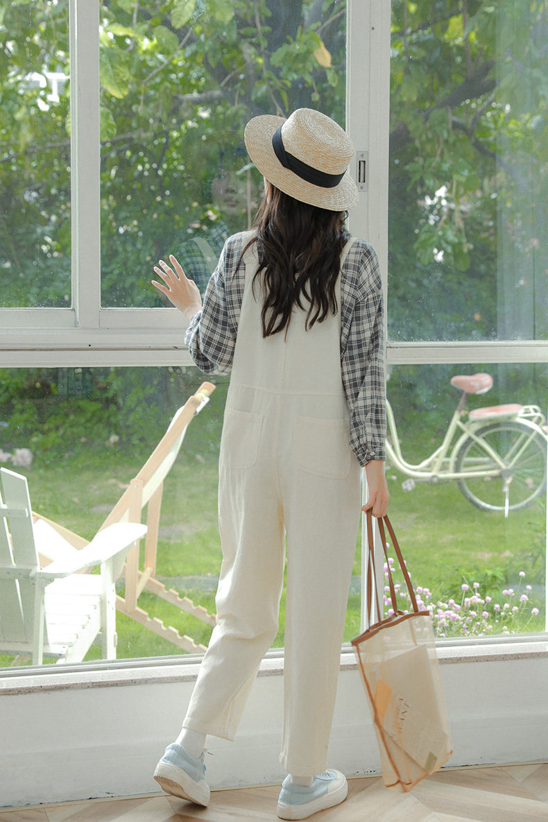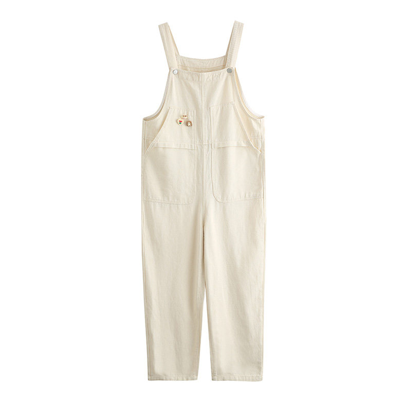 Свежие джинсовые подтяжки, весенние белые милые штаны, тренд сезона, свободный крой