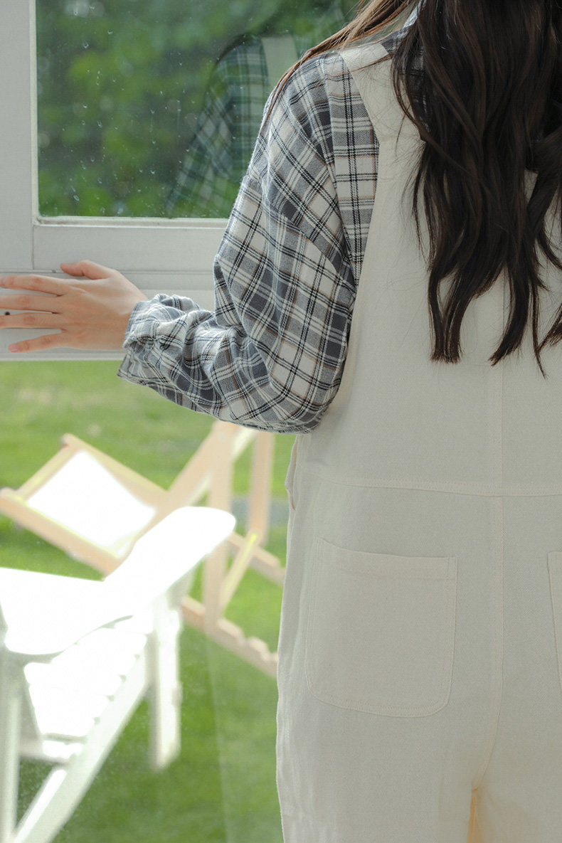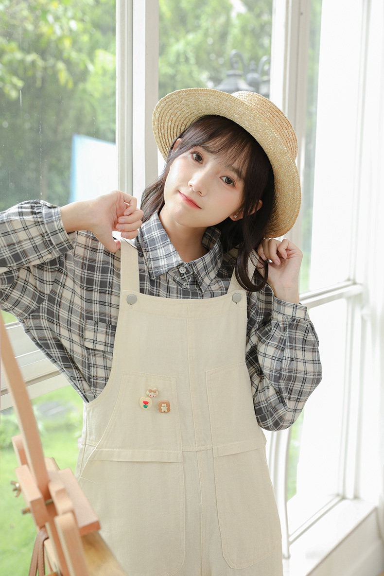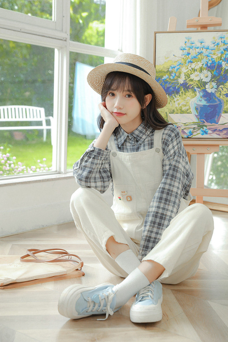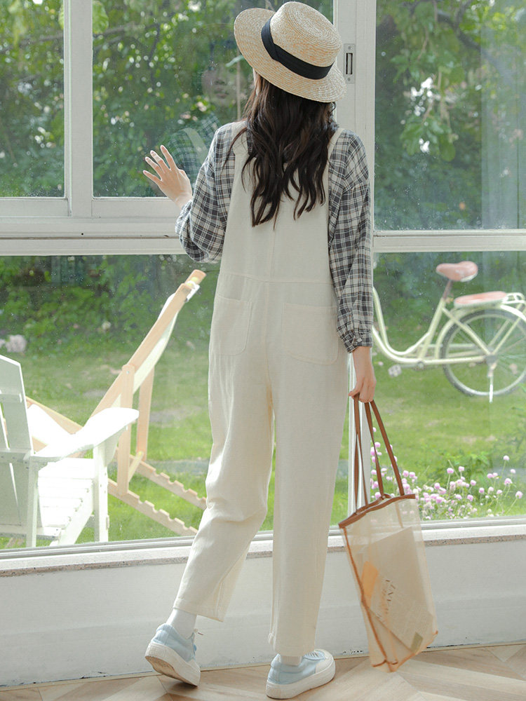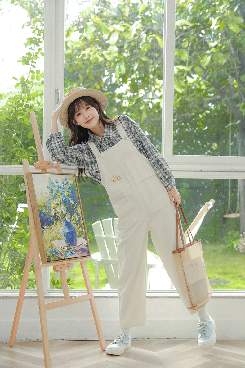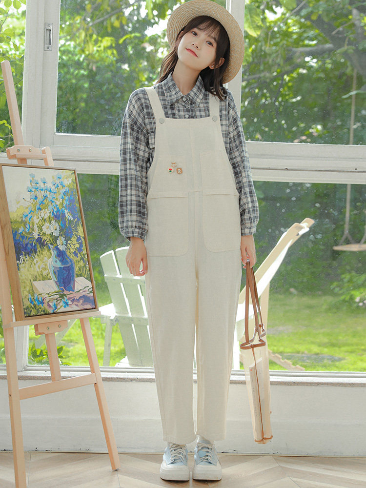 Свежие джинсовые подтяжки, весенние белые милые штаны, тренд сезона, свободный крой