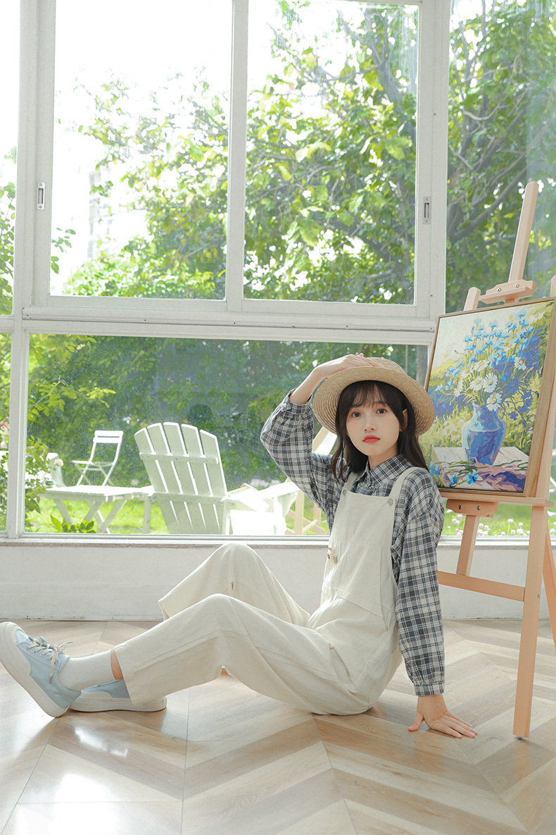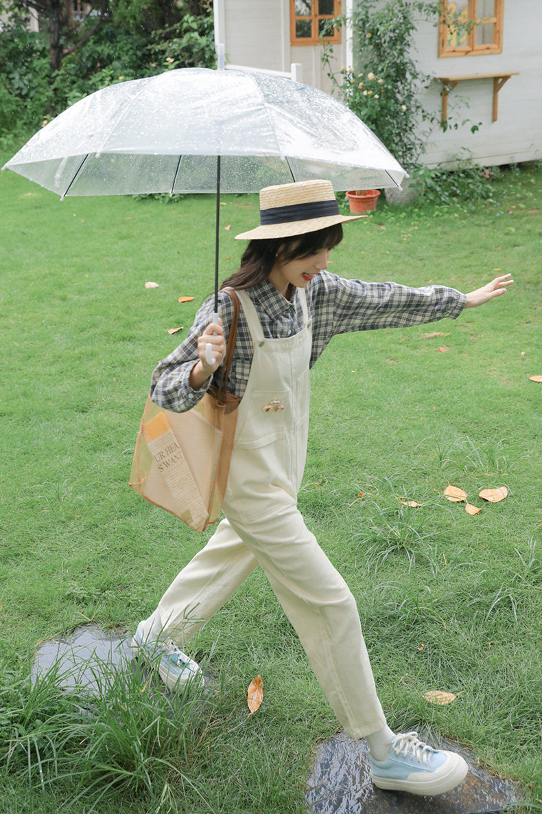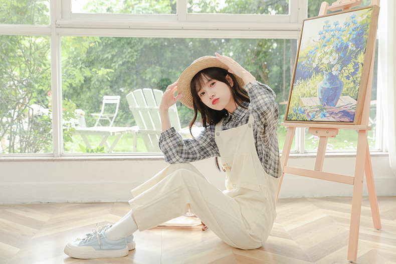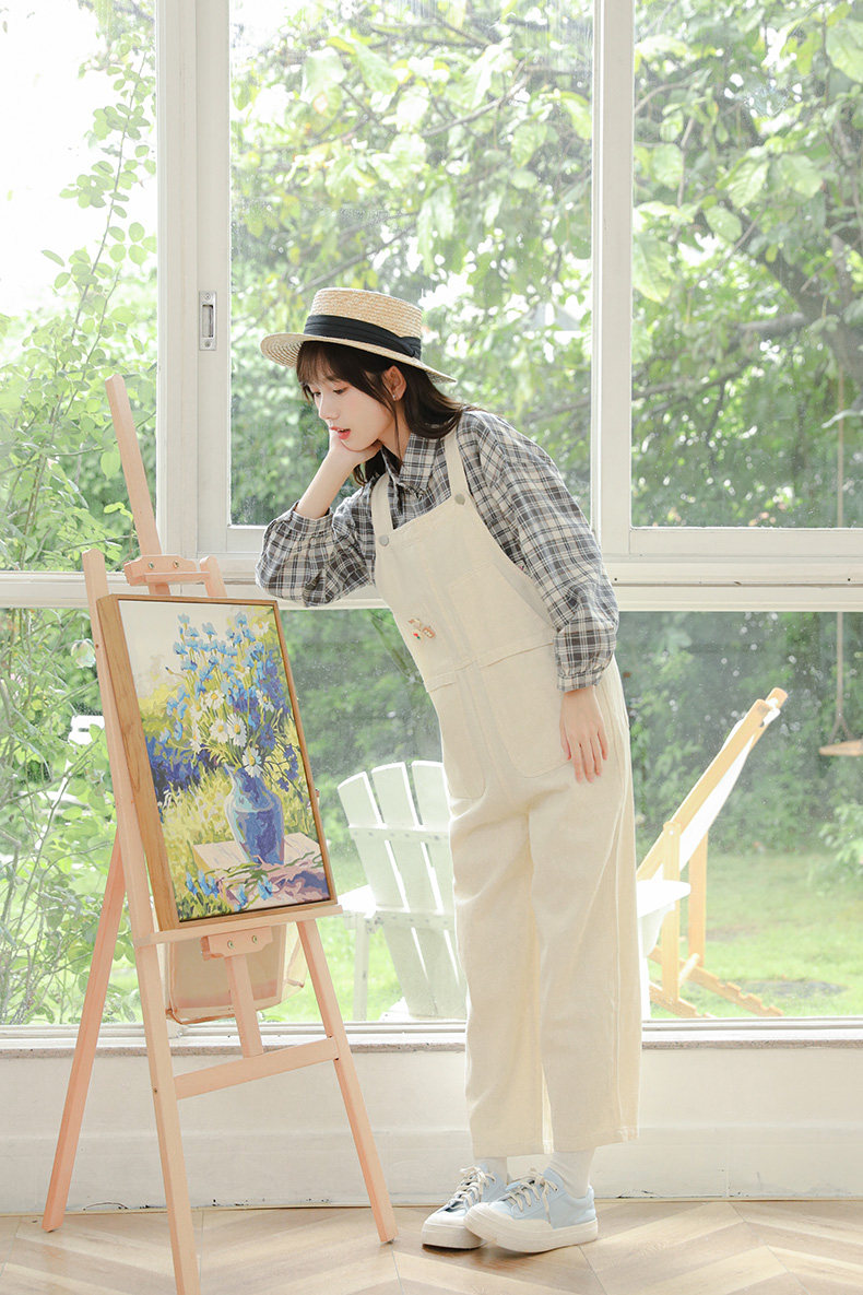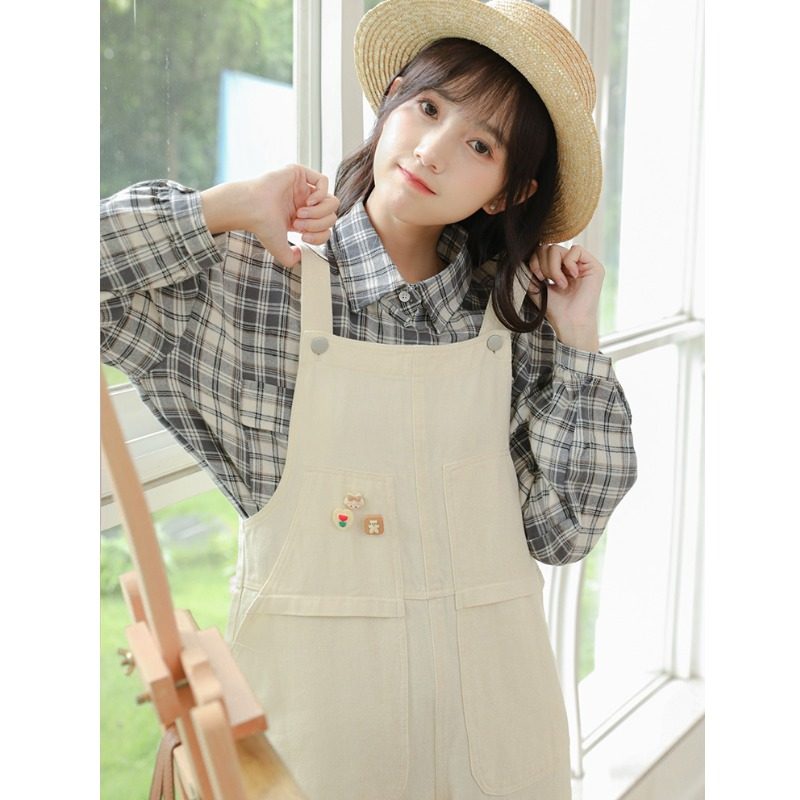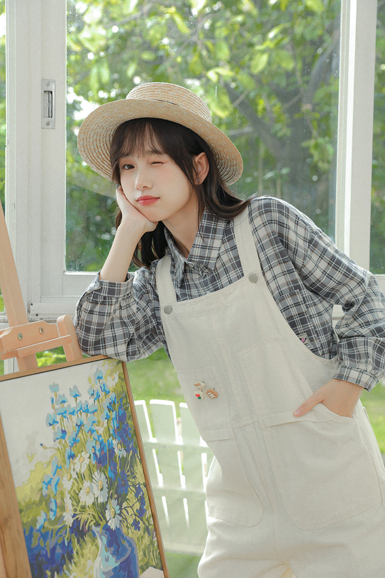 Свежие джинсовые подтяжки, весенние белые милые штаны, тренд сезона, свободный крой