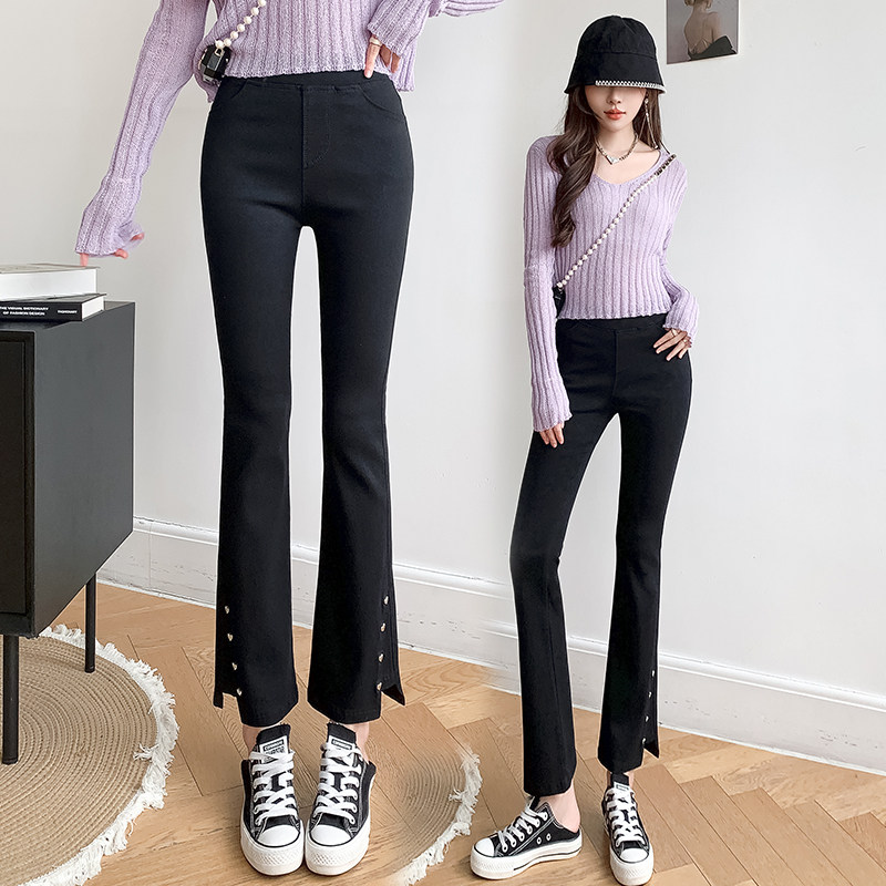 Черные осенние штаны-клёш, дизайнерские штаны, тренд сезона, подходят для подростков