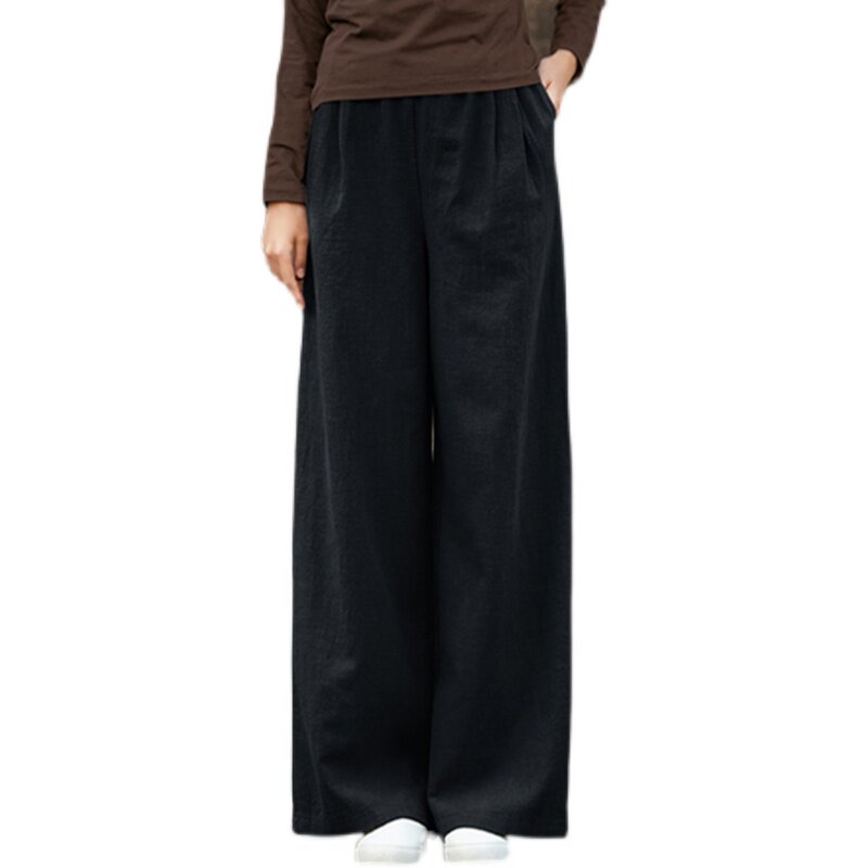 Осенние штаны, из хлопка и льна, оверсайз, свободный прямой крой