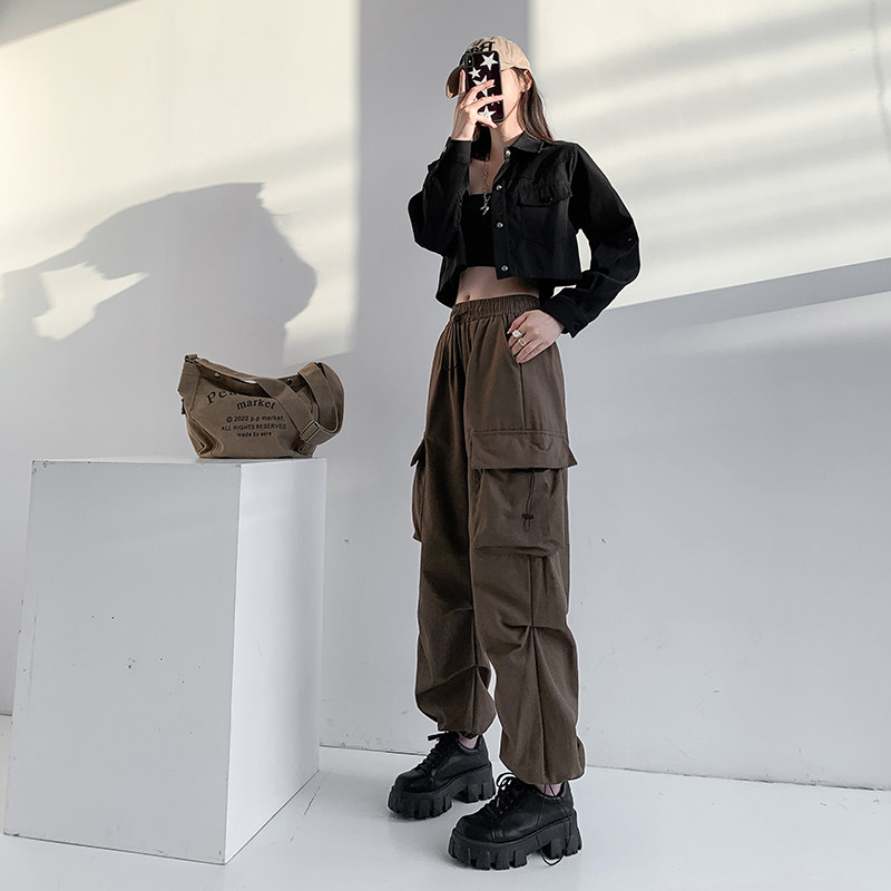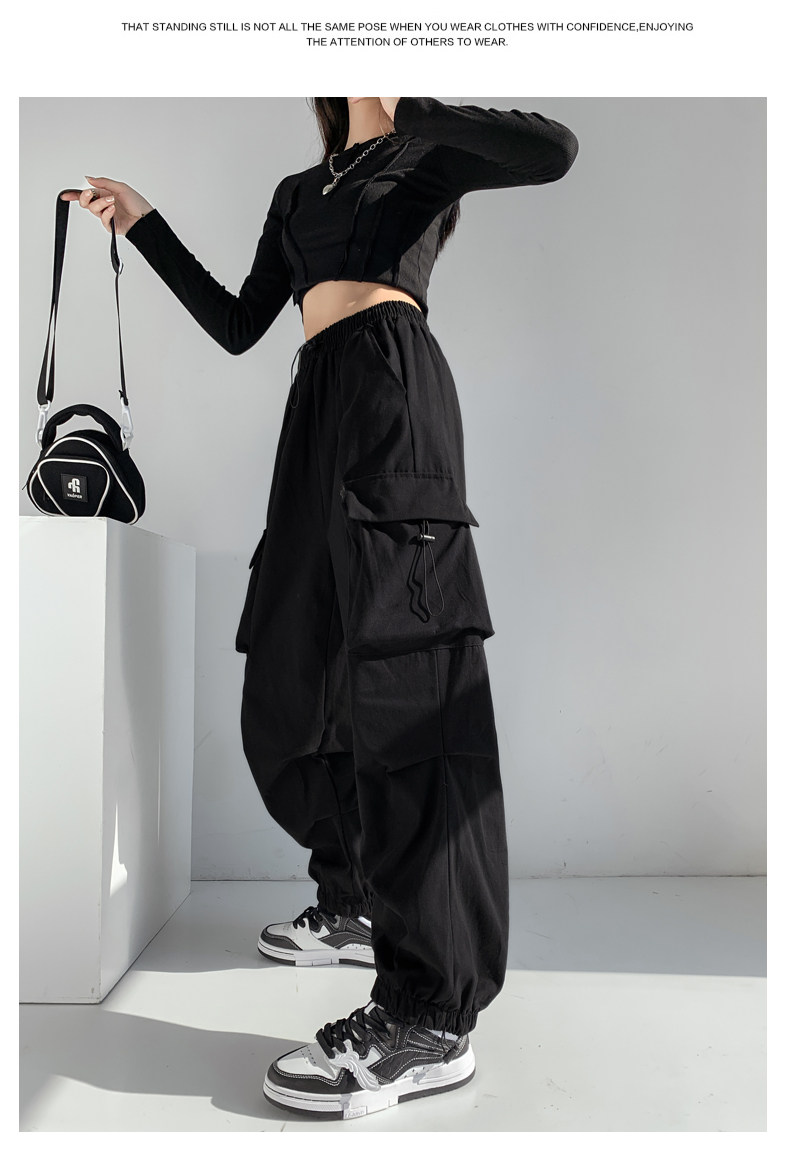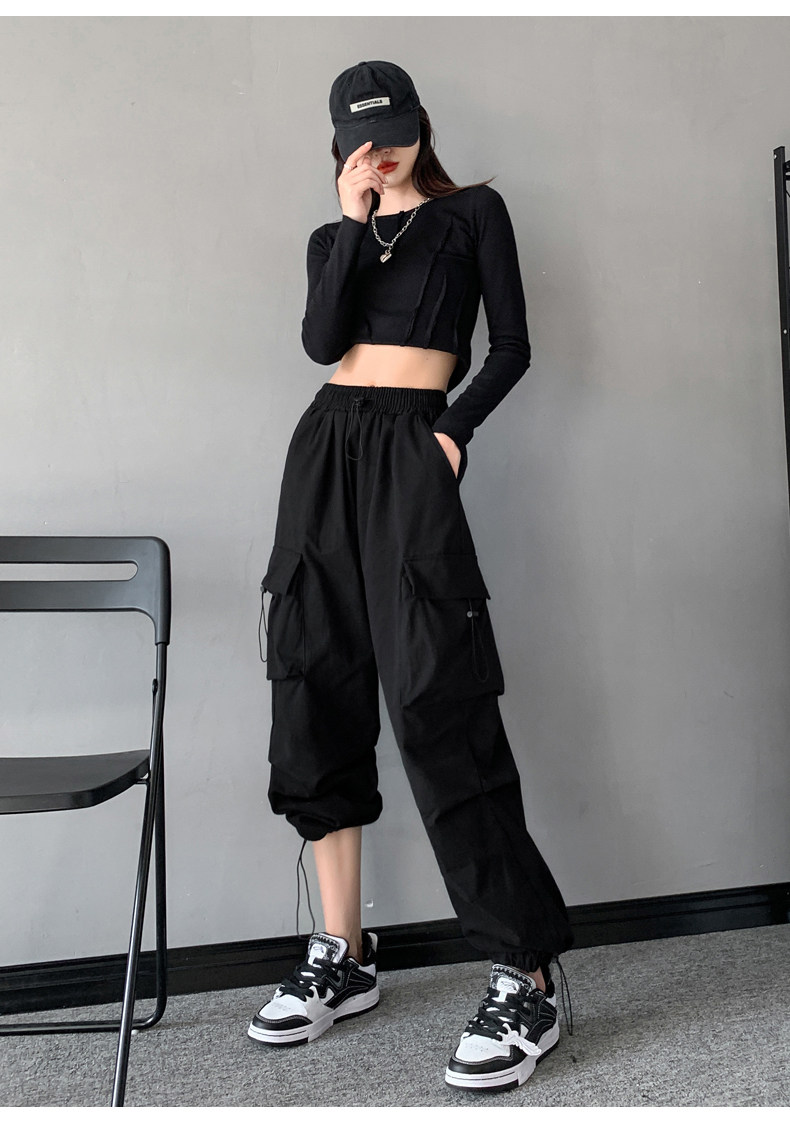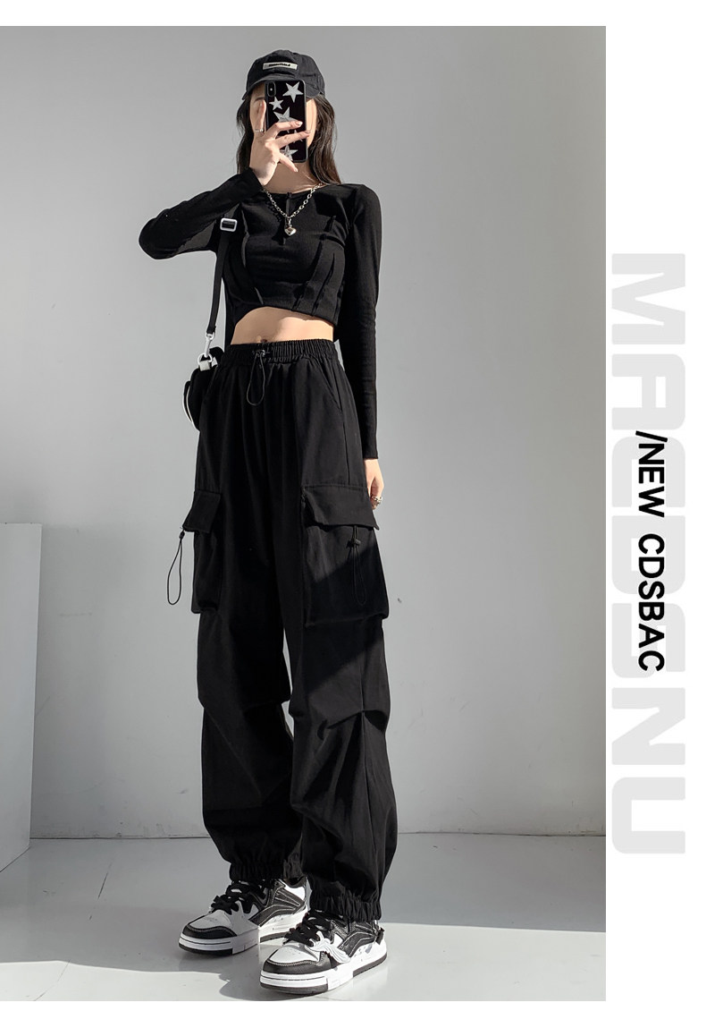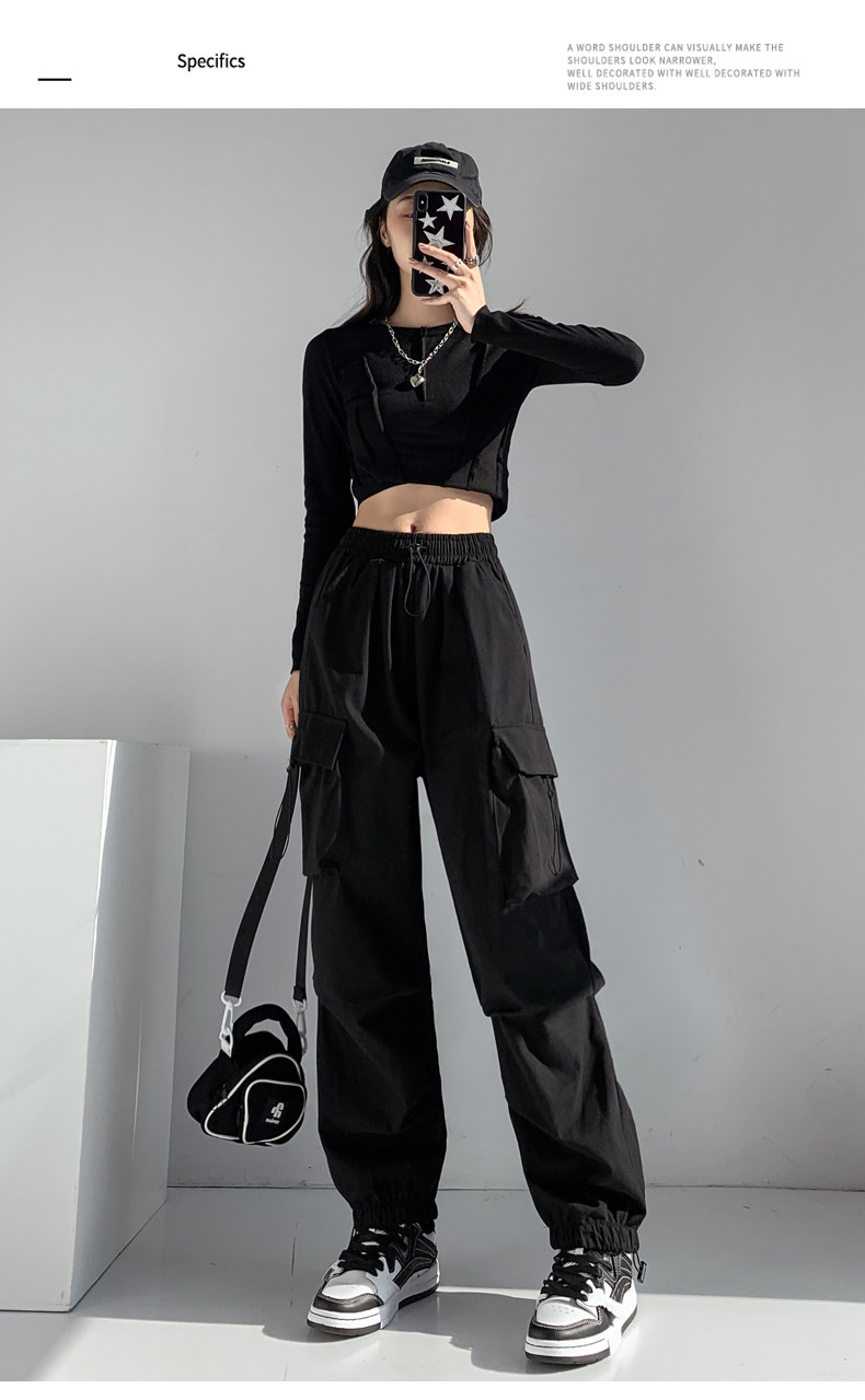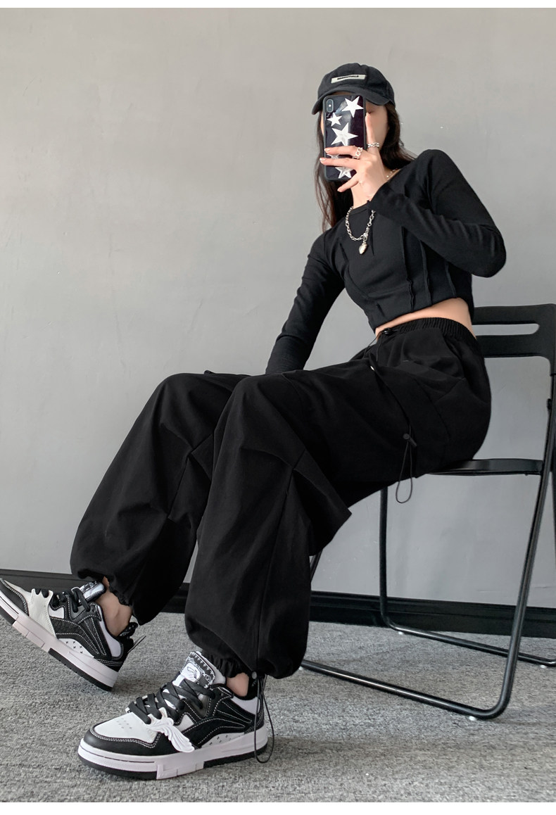Черная униформа медсестры, танцующие осенние штаны, свободный крой, в американском стиле