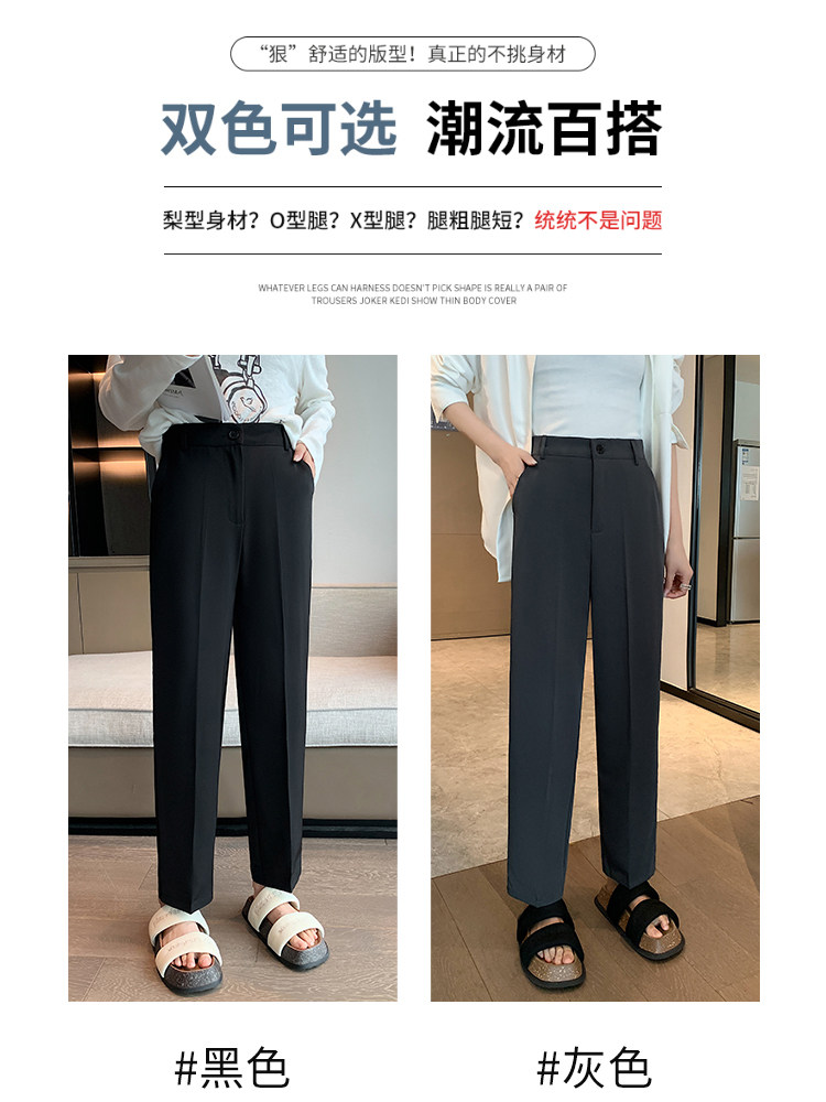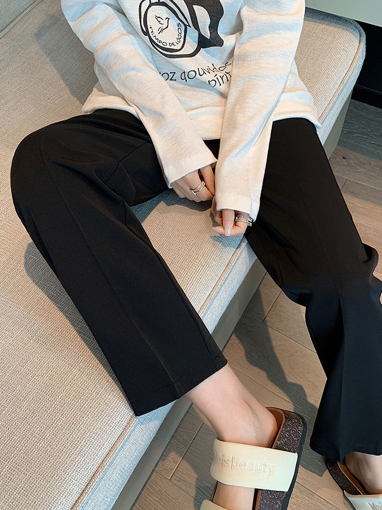 Костюм, осенние черные штаны, подходит для подростков, изысканный стиль, высокая талия, свободный прямой крой
