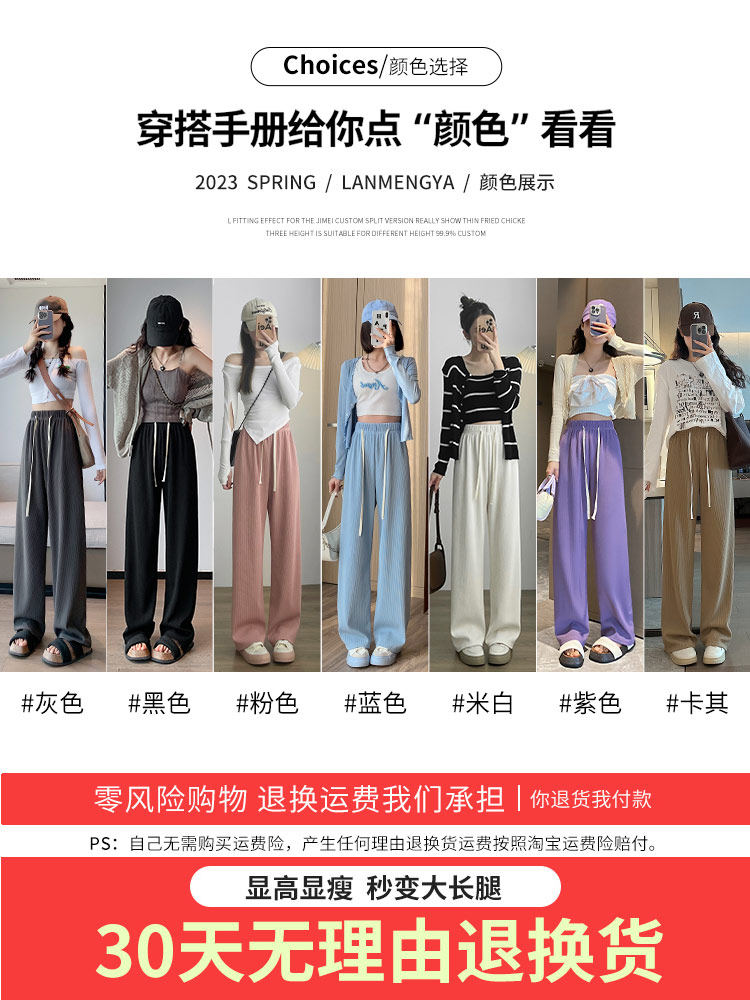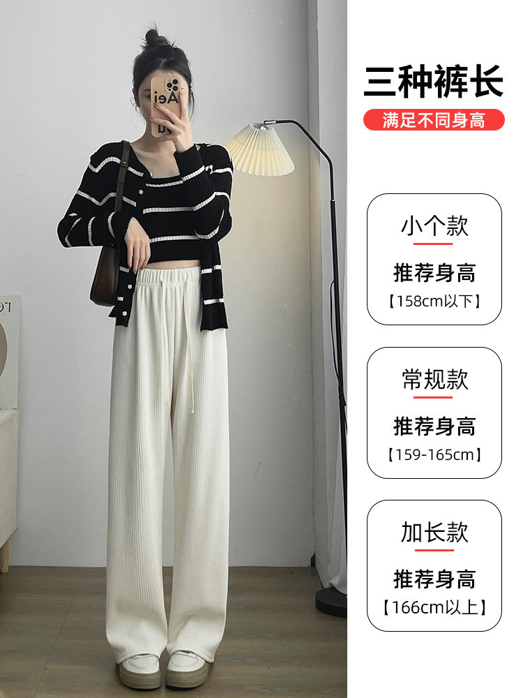 Бежевые осенние демисезонные трикотажные штаны для отдыха, высокая талия, подходит для подростков, свободный прямой крой