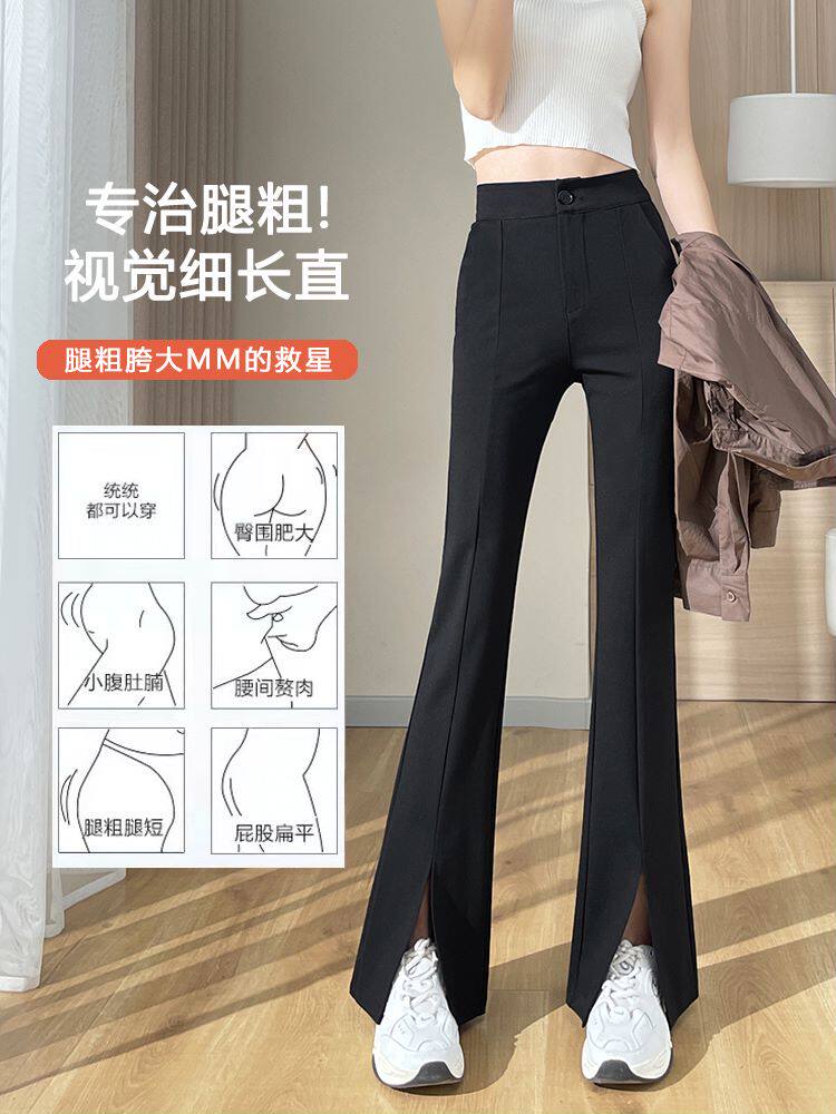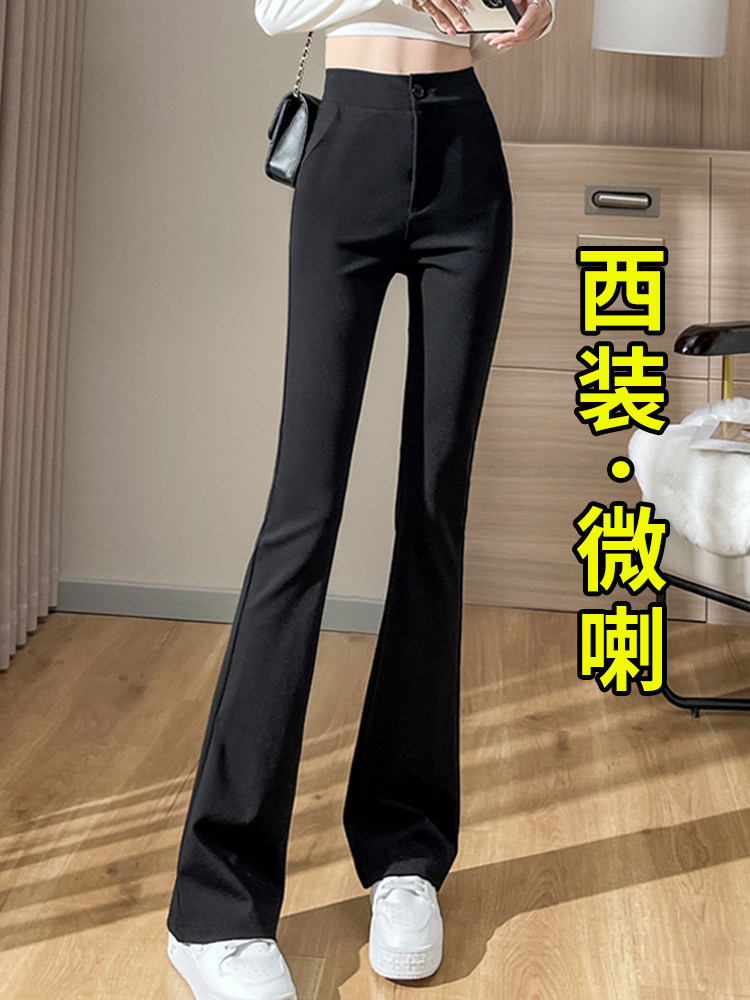 Костюм, осенние приталенные штаны, тонкие черные штаны-клёш, коллекция 2023, высокая талия, по фигуре, подходит для подростков, свободный прямой крой