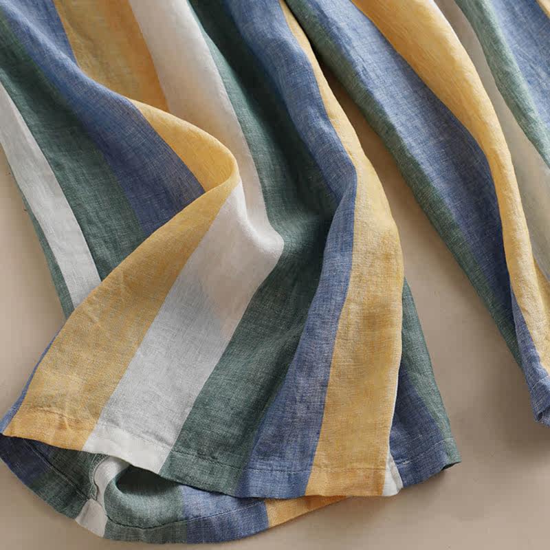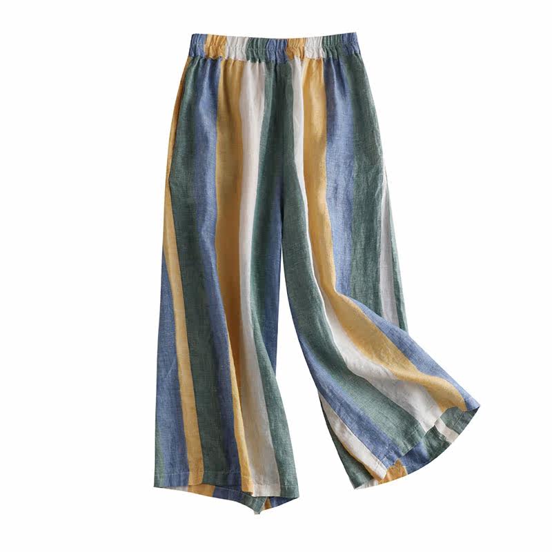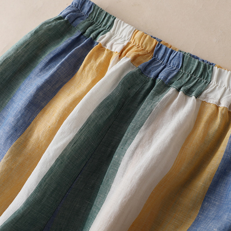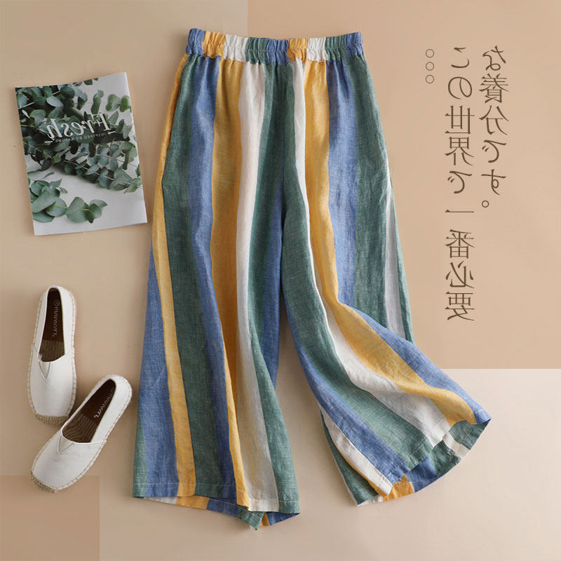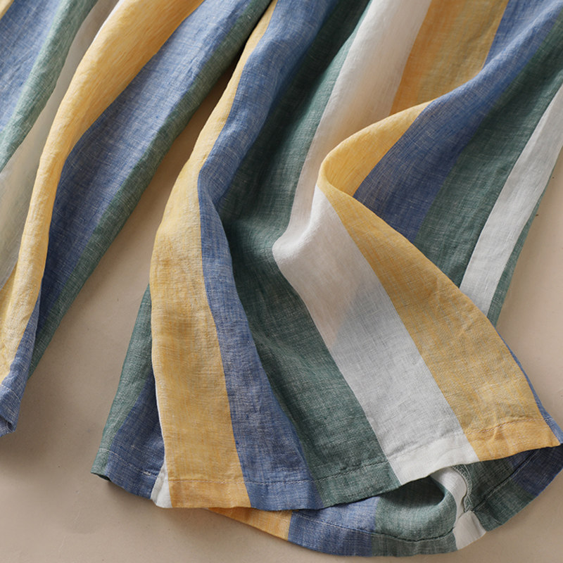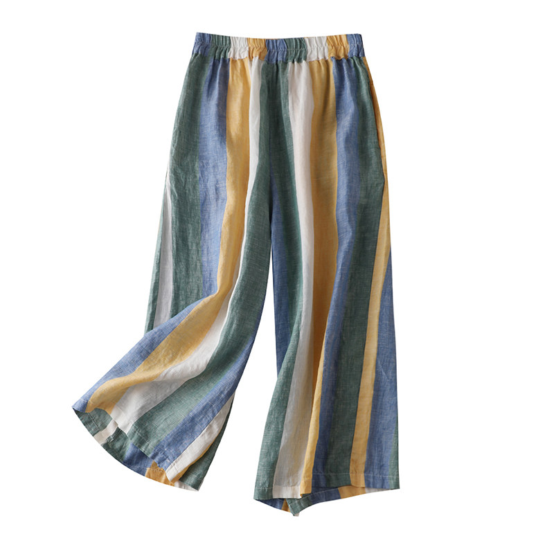 Приталенные штаны, из хлопка и льна, высокая талия