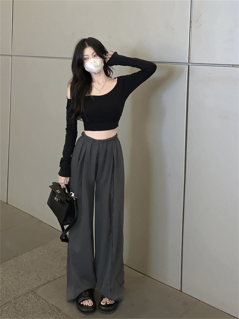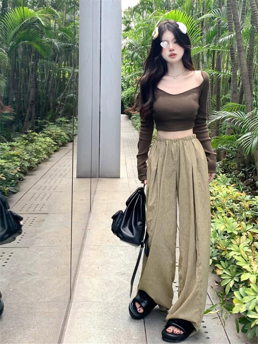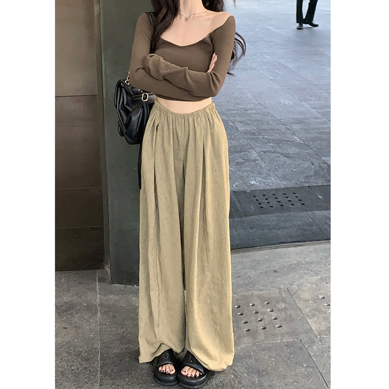 Цвет: Темный хаки, Темно-черный, Летние тонкие японские осенние штаны, изысканный стиль, подходят для подростков, [Прямая вертикальная/высокая талия/весна и лето/популярное/высокое чувство чувства/смысла дизайна ниша/взрыв знаменитостей в Интернете/Популярный взрыв/универсальный/тонкий/темперамент) в этом году]