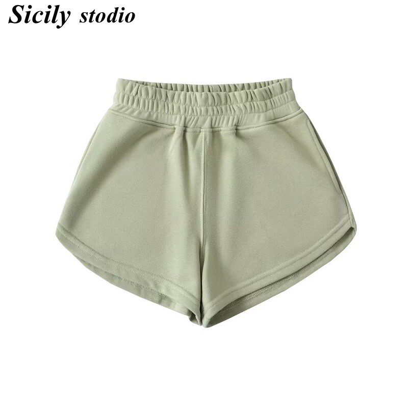 Приталенные шорты для отдыха, штаны, в американском стиле, высокая талия