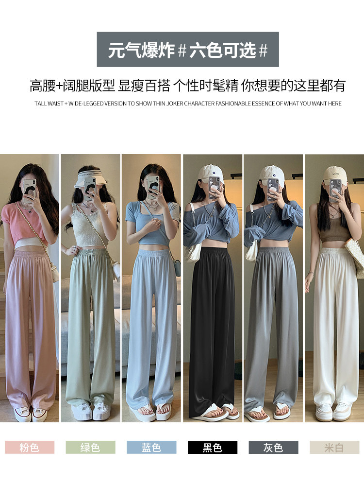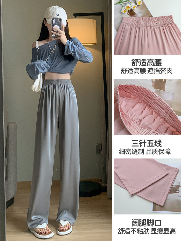 Шелковые осенние летние штаны для отдыха, свободный прямой крой, высокая талия, защита от солнца