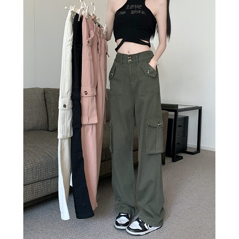 Ретро осенние штаны, в американском стиле, высокая талия, свободный прямой крой