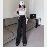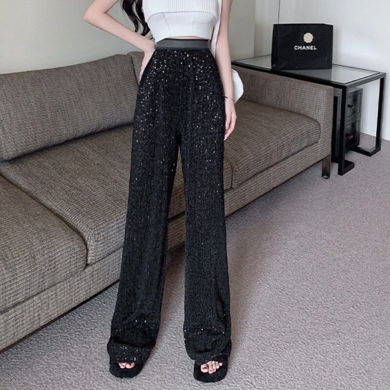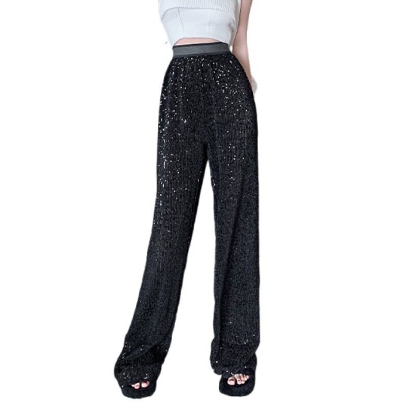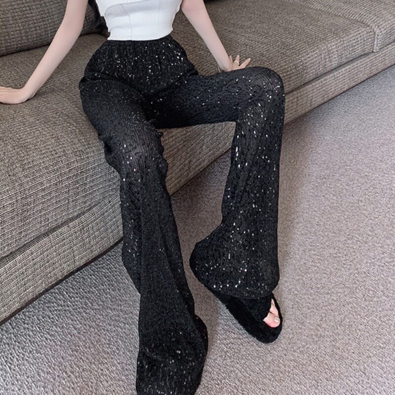 Черные дизайнерские штаны, в американском стиле, тренд сезона, свободный прямой крой, изысканный стиль