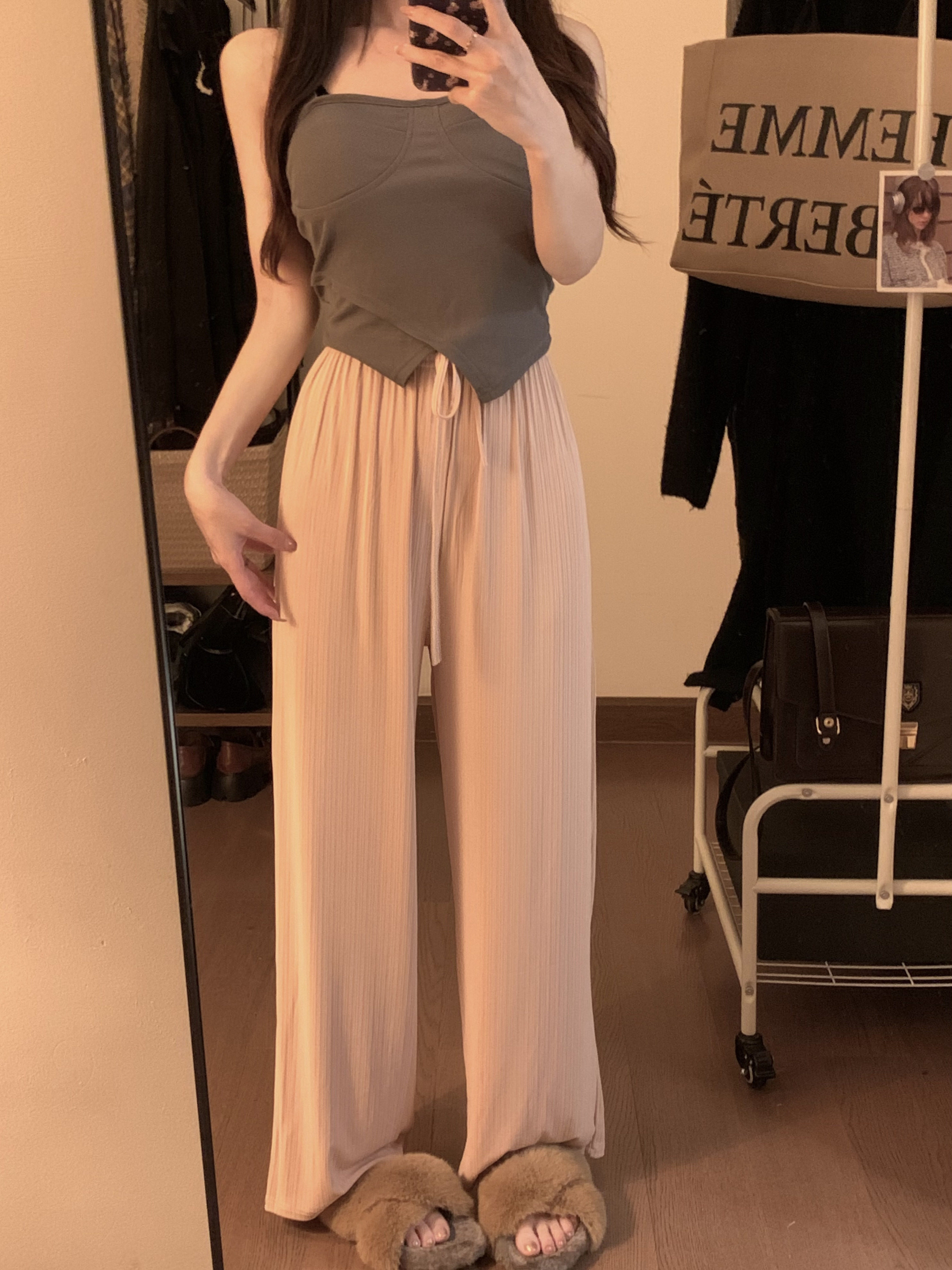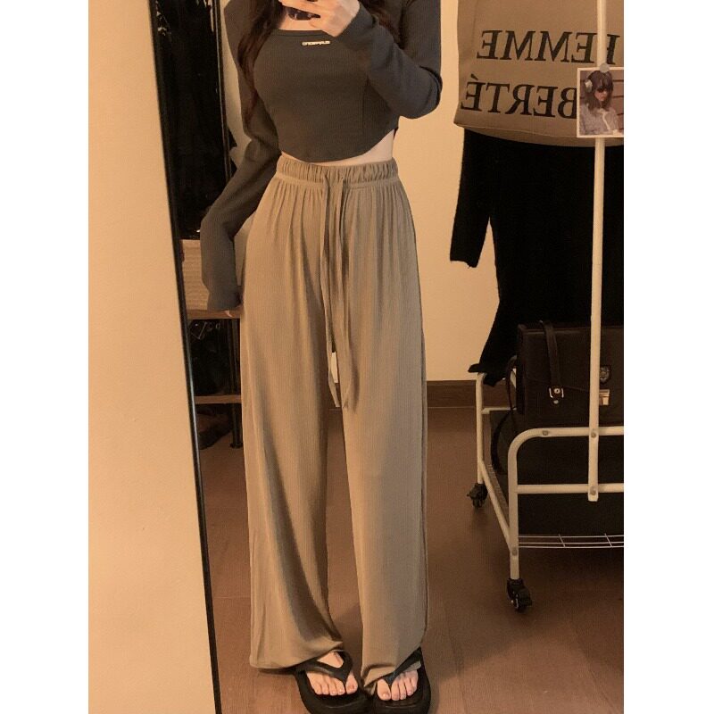 Дизайнерские шелковые штаны для отдыха, тренд сезона, высокая талия, свободный прямой крой