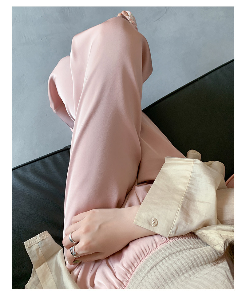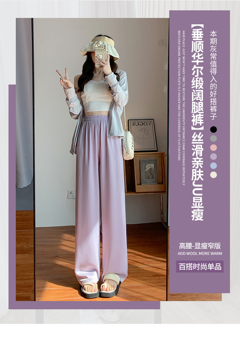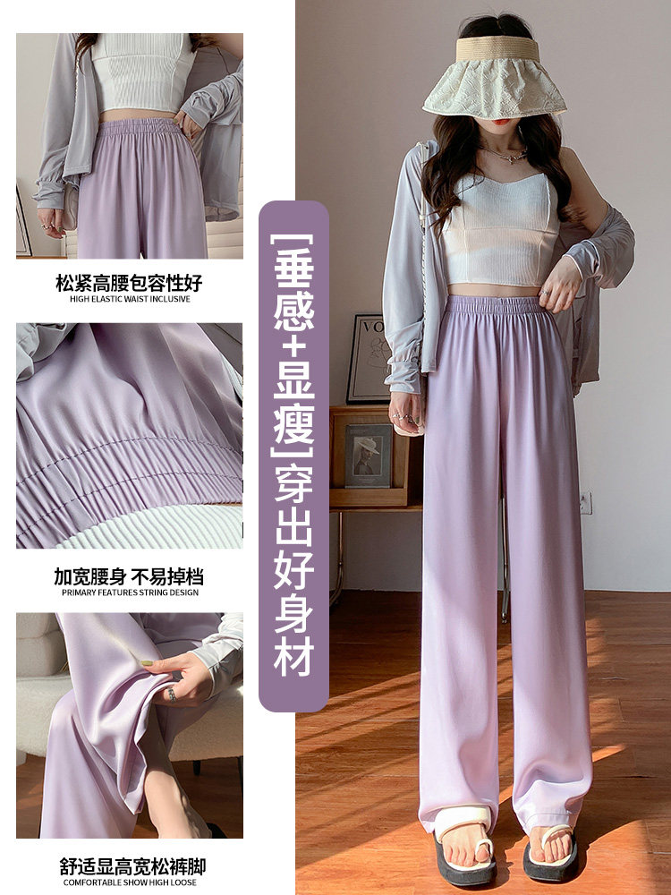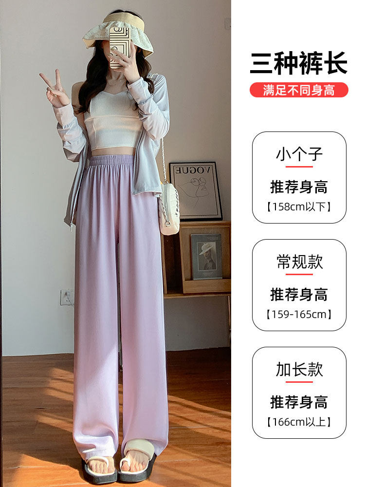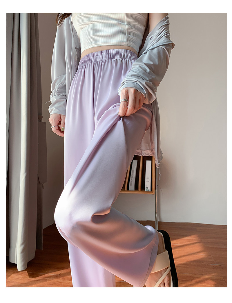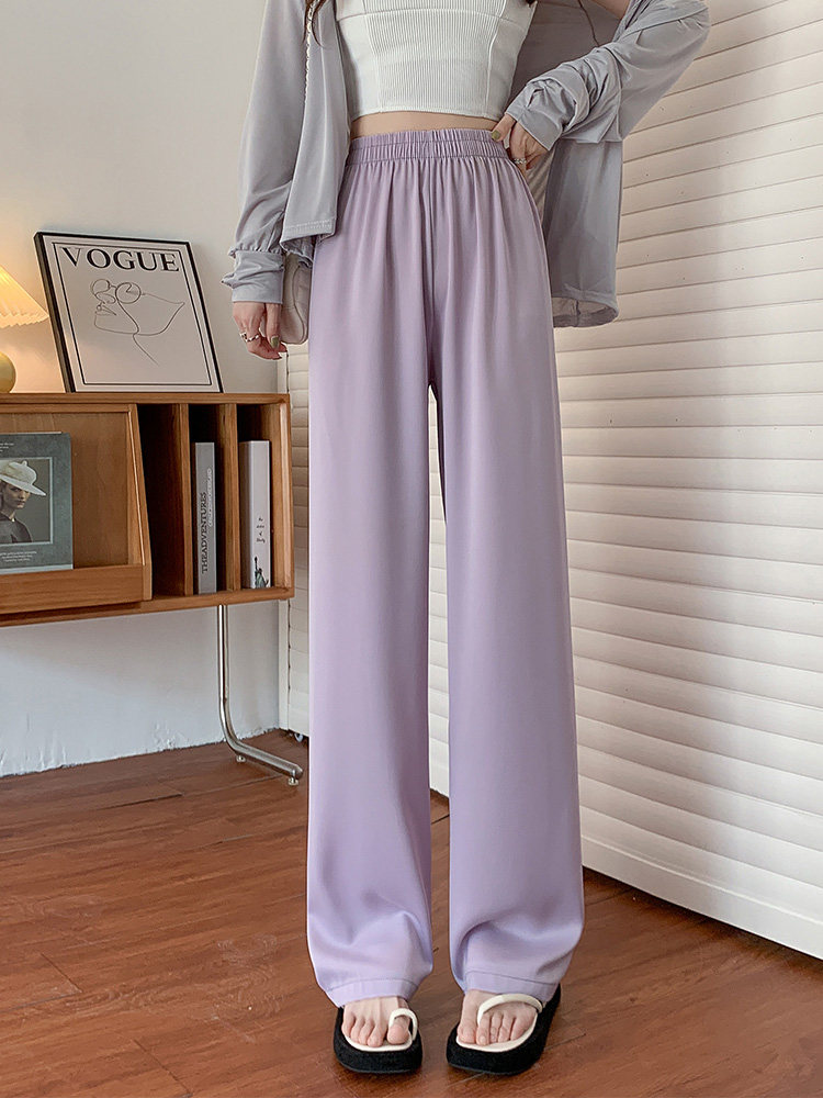Сиреневые шелковые осенние летние штаны для отдыха, высокая талия, свободный прямой крой