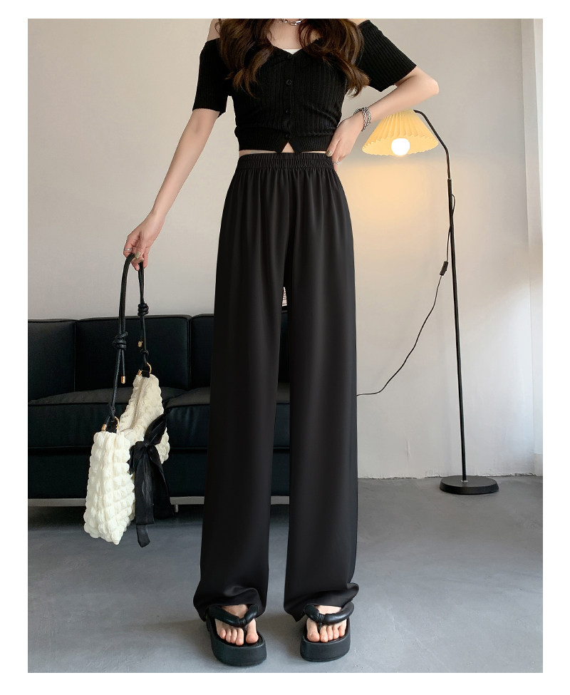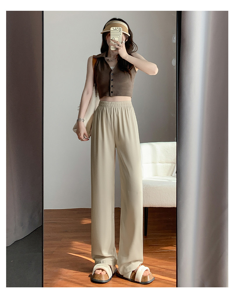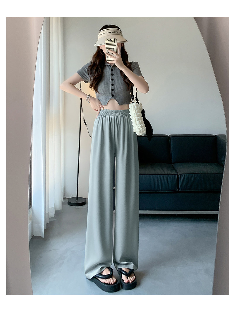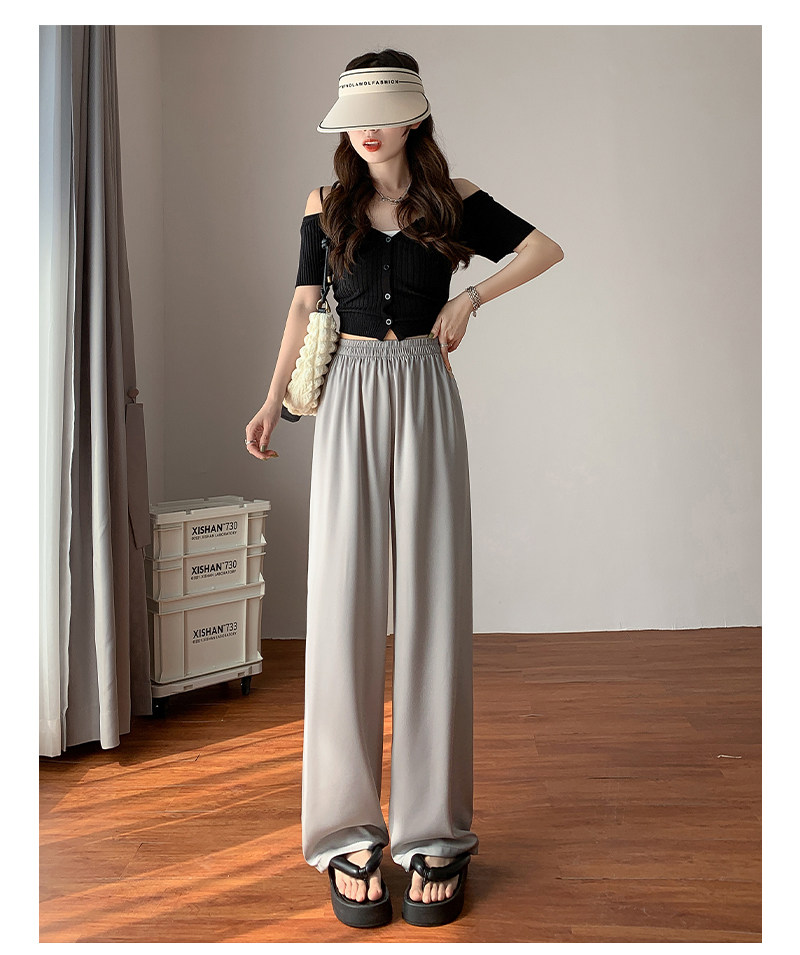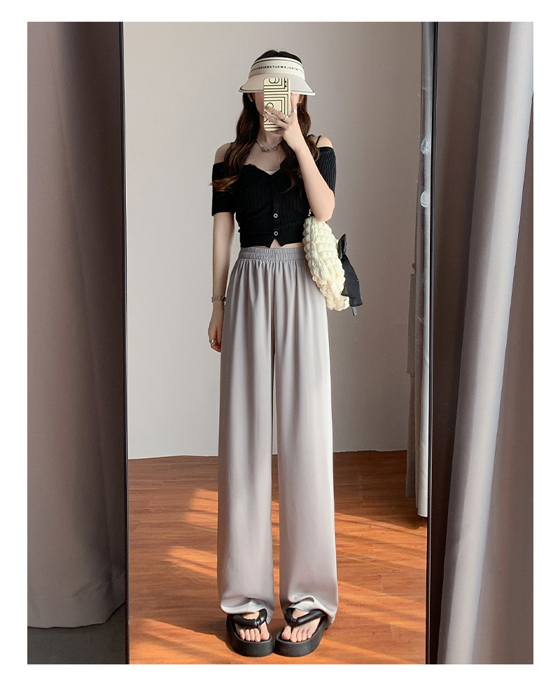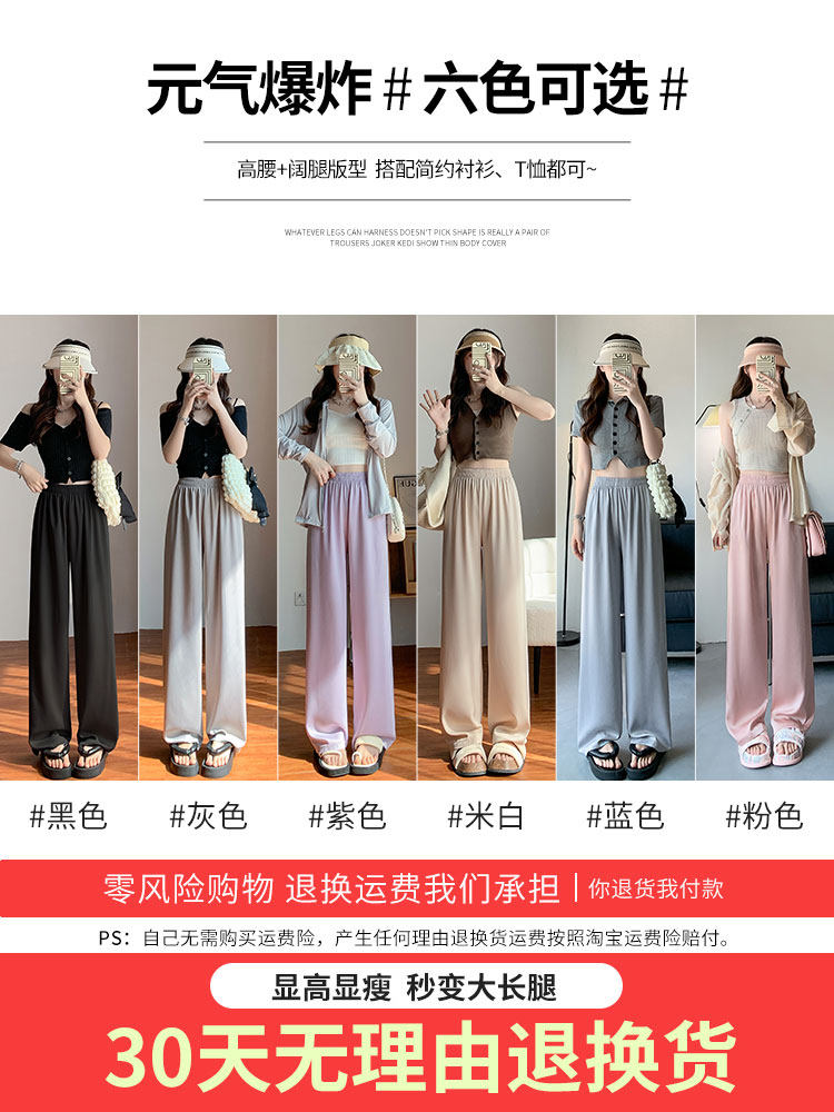 Сиреневые шелковые осенние летние штаны для отдыха, высокая талия, свободный прямой крой