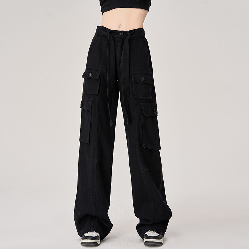 Черная униформа медсестры, осенние ретро штаны для отдыха, высокая талия, свободный прямой крой, подходит для подростков, в американском стиле