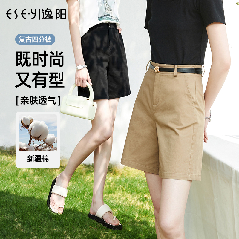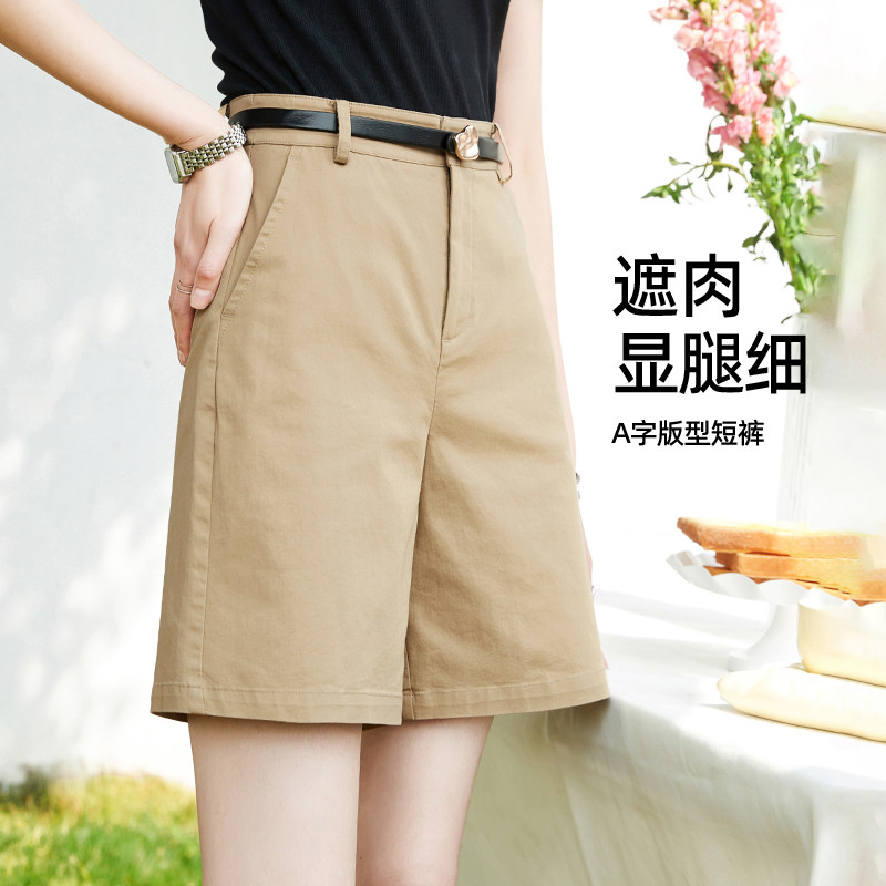 Бежевые шорты, летние тонкие приталенные штаны, свободный прямой крой, высокая талия