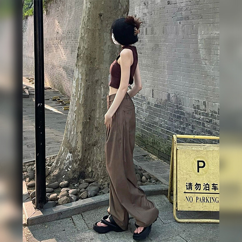 Белые осенние штаны, в американском стиле, свободный прямой крой, высокая талия