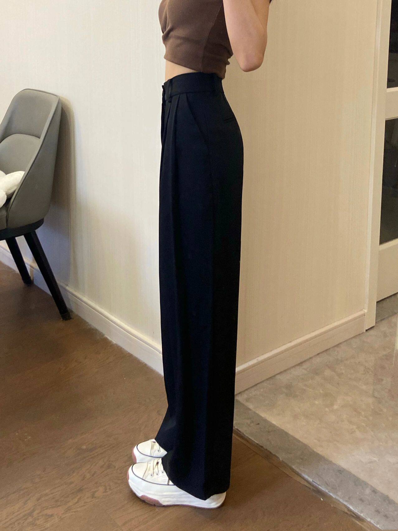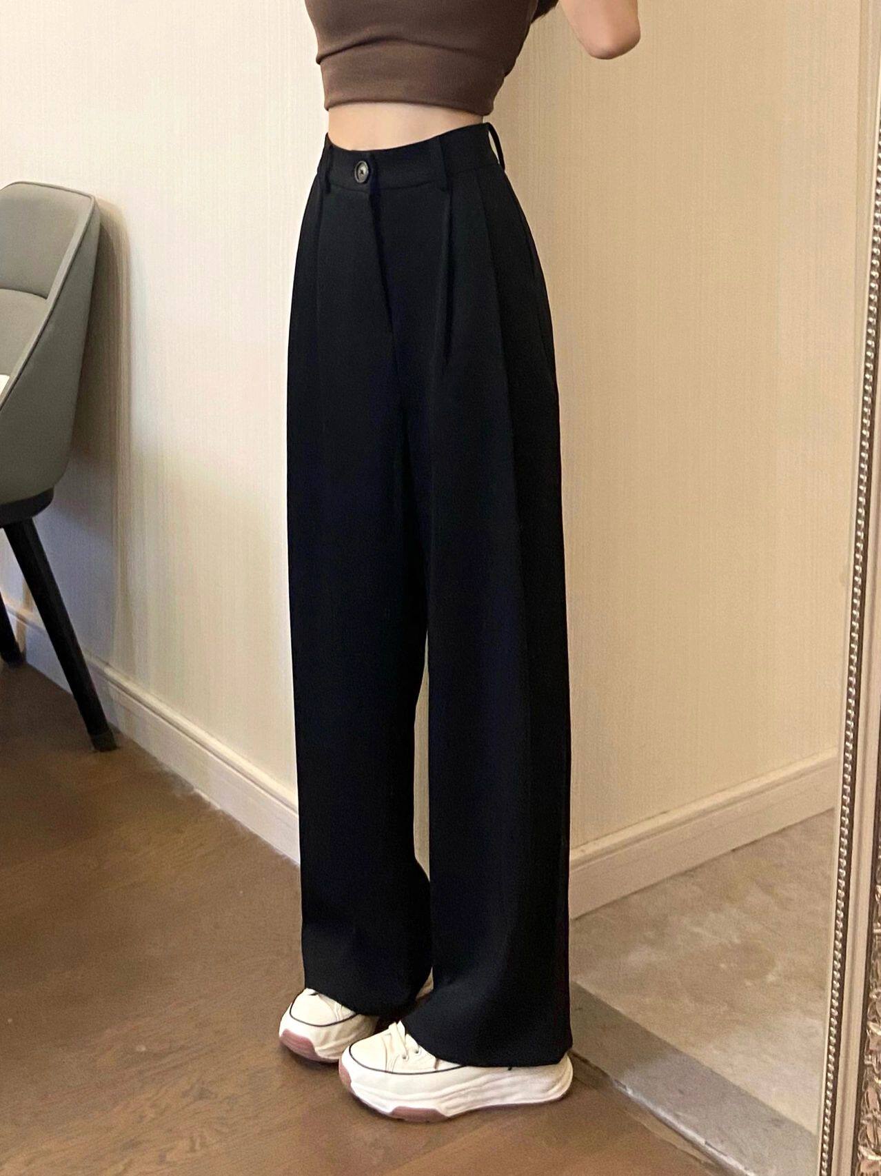 Черный костюм для отдыха, осенние приталенные штаны, размер, высокая талия, свободный прямой крой