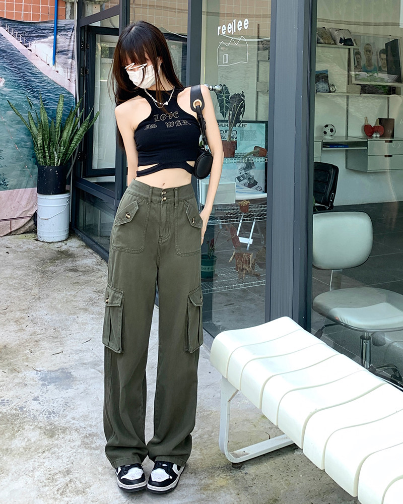 Ретро зеленая униформа медсестры, штаны, танцующие прямые свободные джинсы, в американском стиле