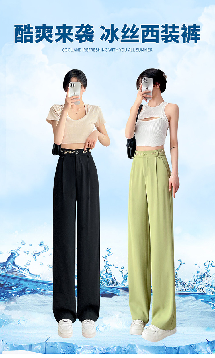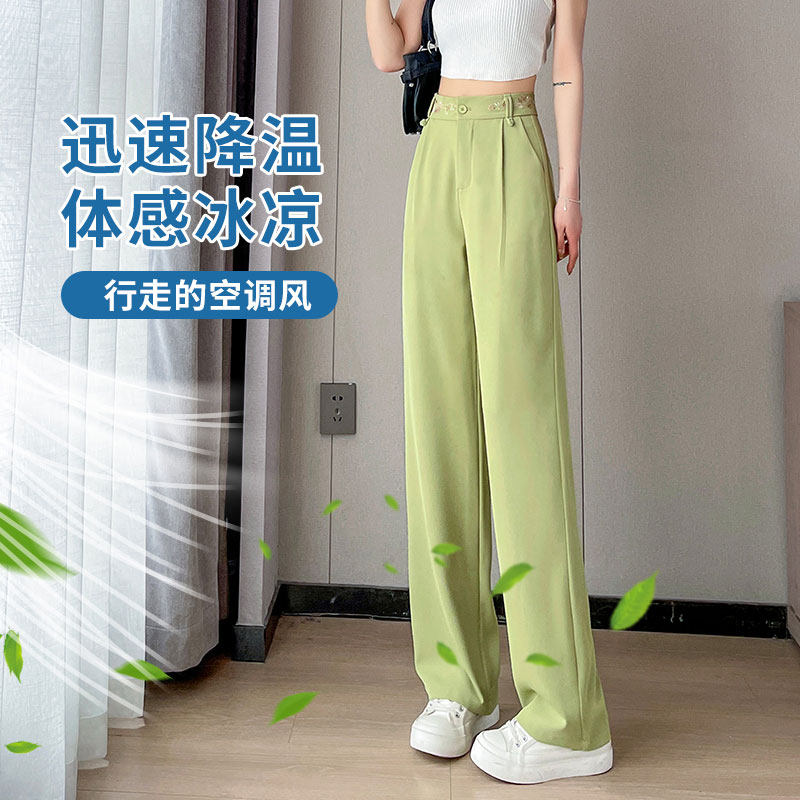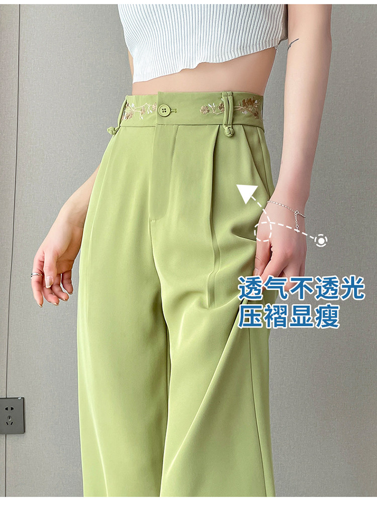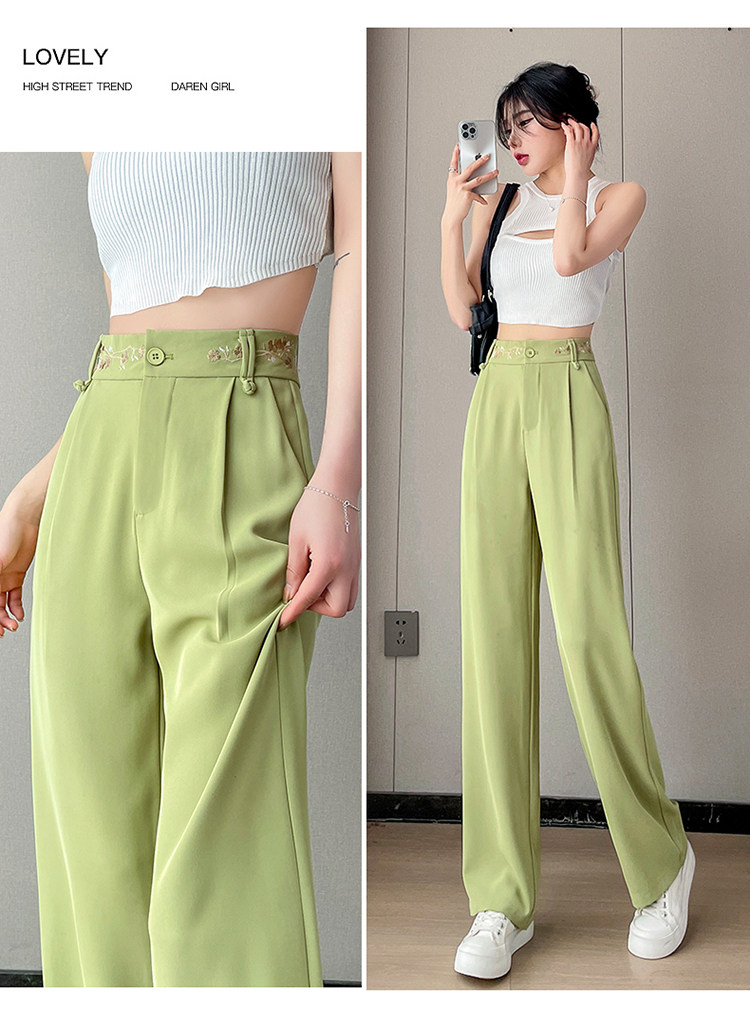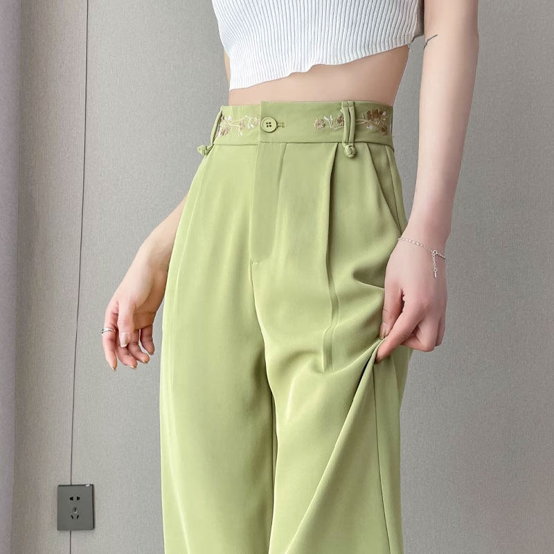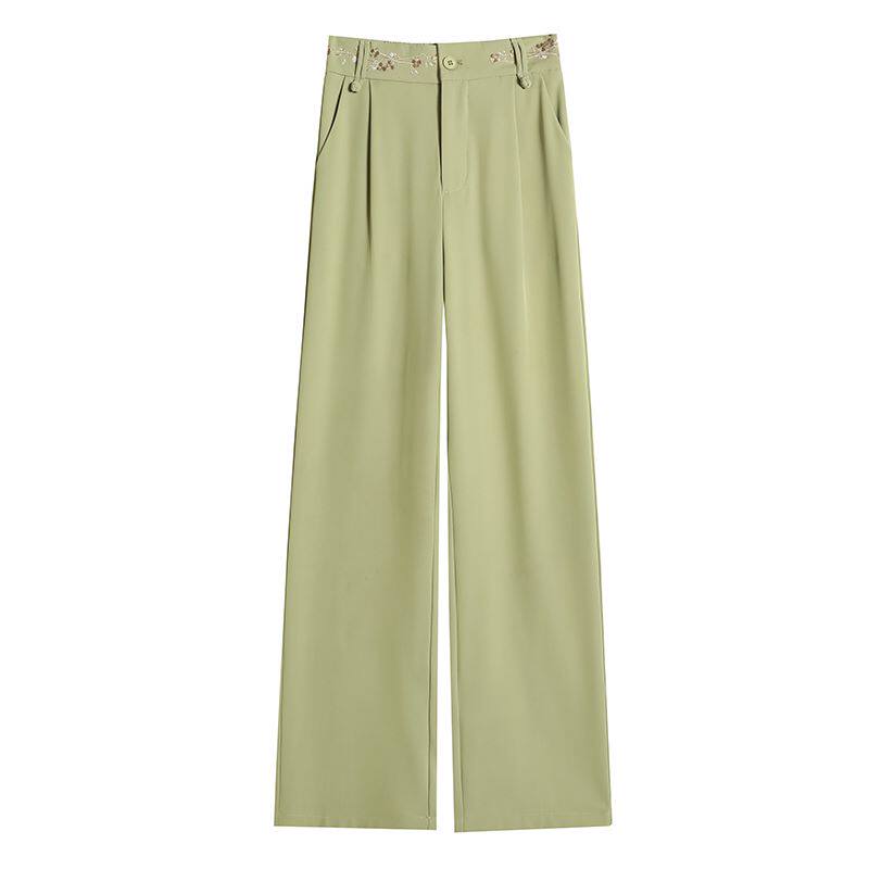 Зеленые шелковые тонкие дизайнерские штаны, костюм, тренд сезона, китайский стиль