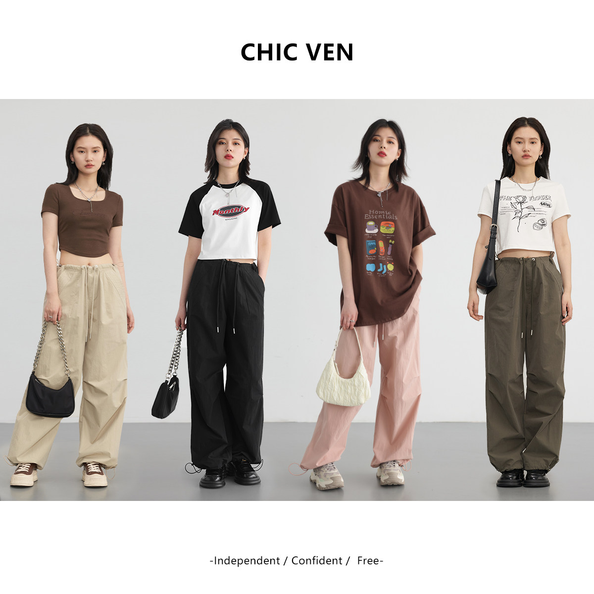 Chicven "Campus Street" 2024 г. весна и лето американский ретро -ретро -ретро -рубеж -брюк.