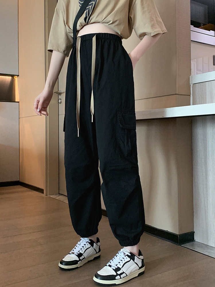 Тонкие штаны для отдыха, высокая талия, эластичная талия, на шнурках