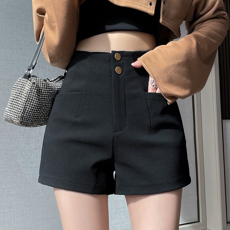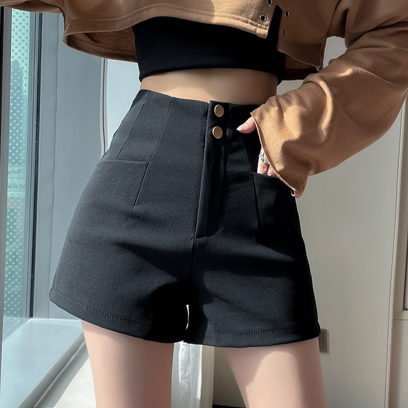 Весенний тонкий черный цветной базовый костюм, шорты, штаны, 2023, высокая талия, в обтяжку, по фигуре
