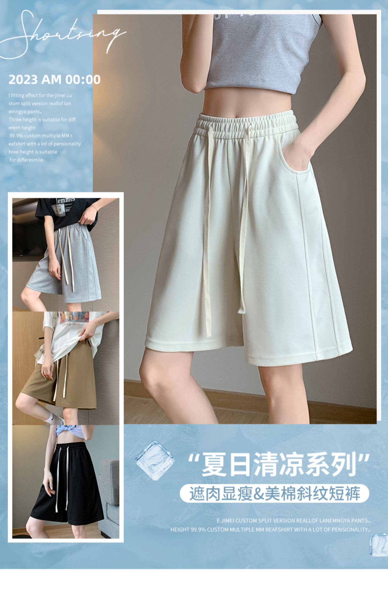 Белые спортивные шорты, тонкие штаны для отдыха, высокая талия, свободный прямой крой, в американском стиле, подходит для подростков