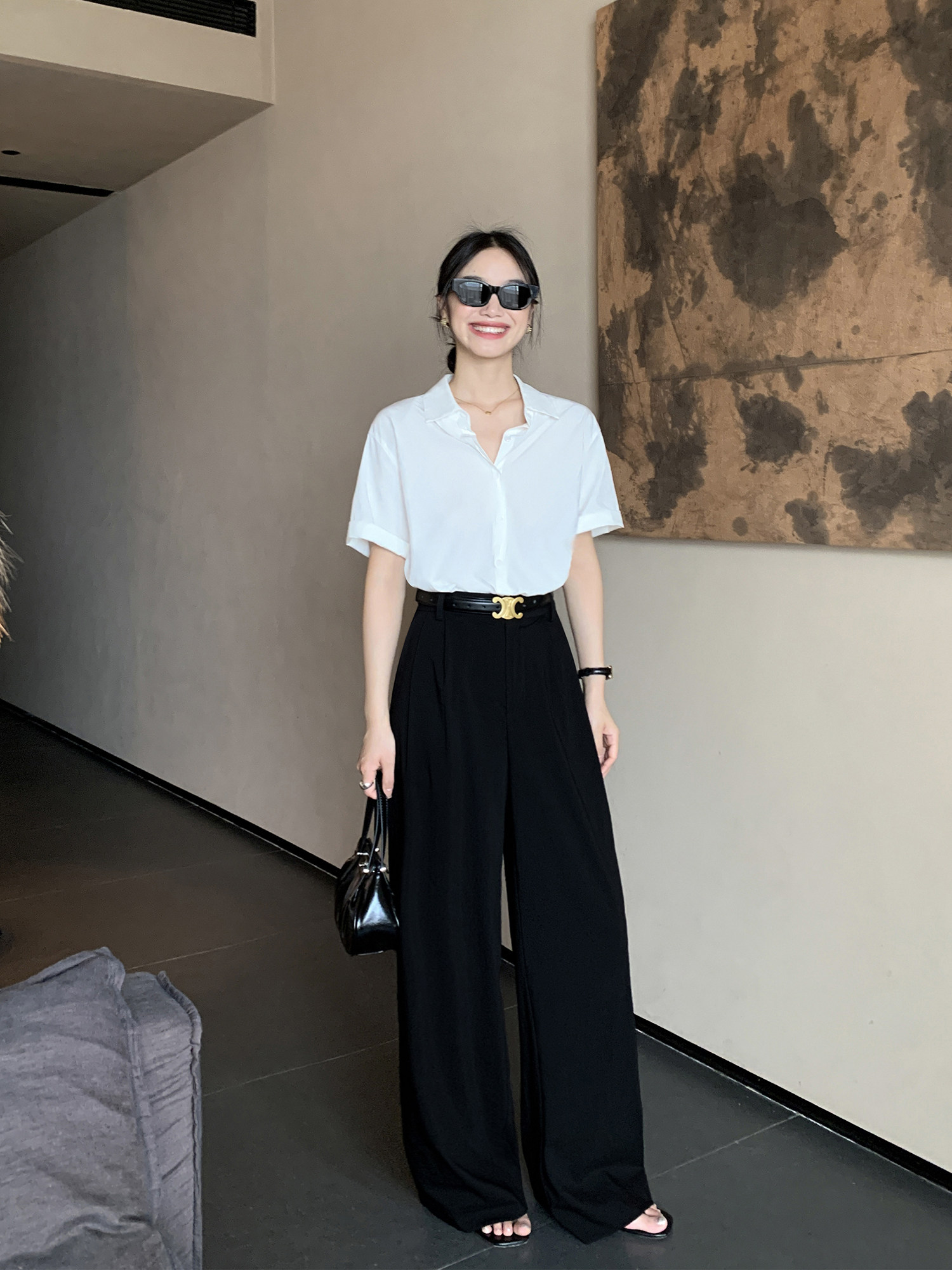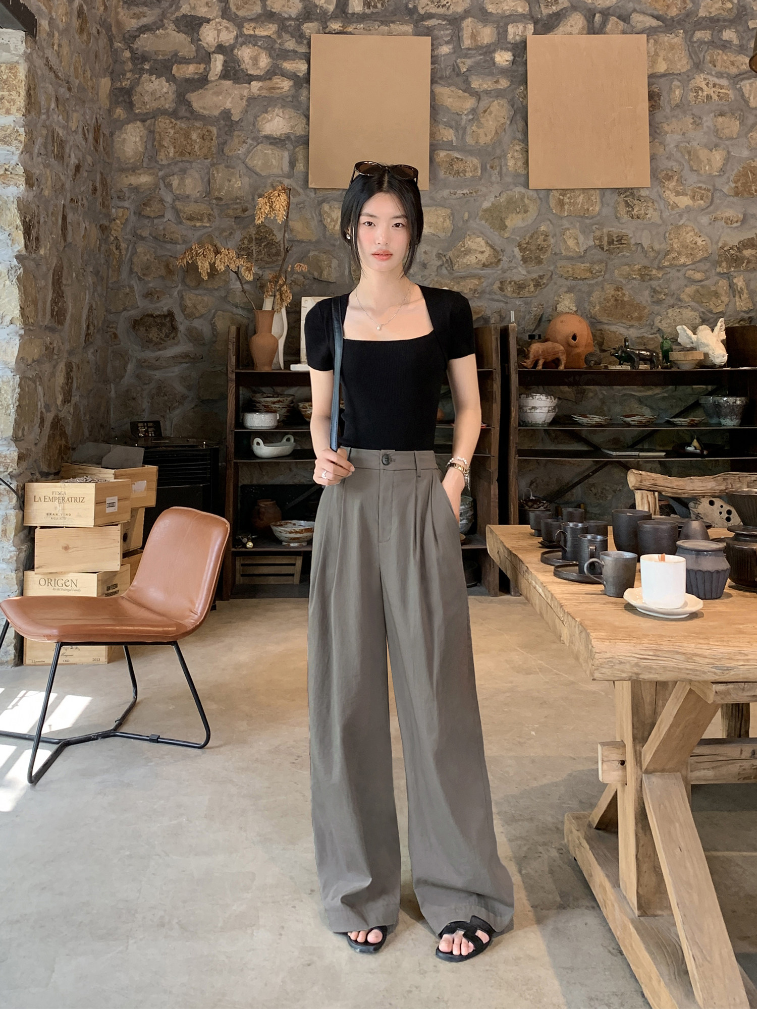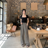 Тонкие штаны, костюм, повседневные брюки, высокая талия, свободный крой