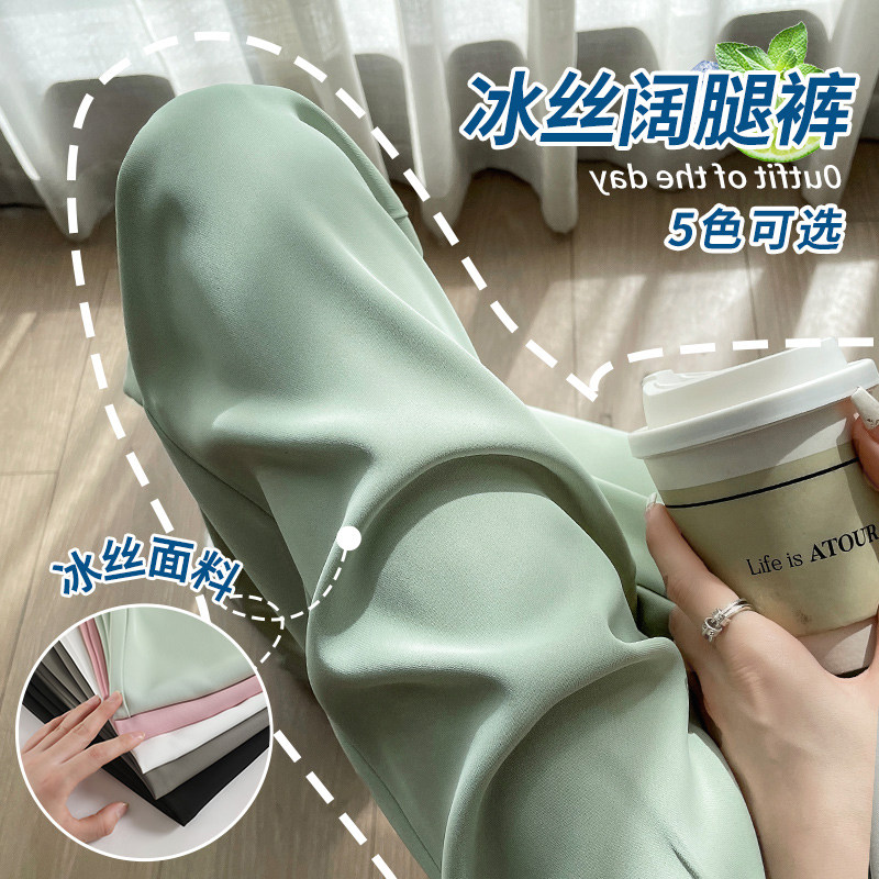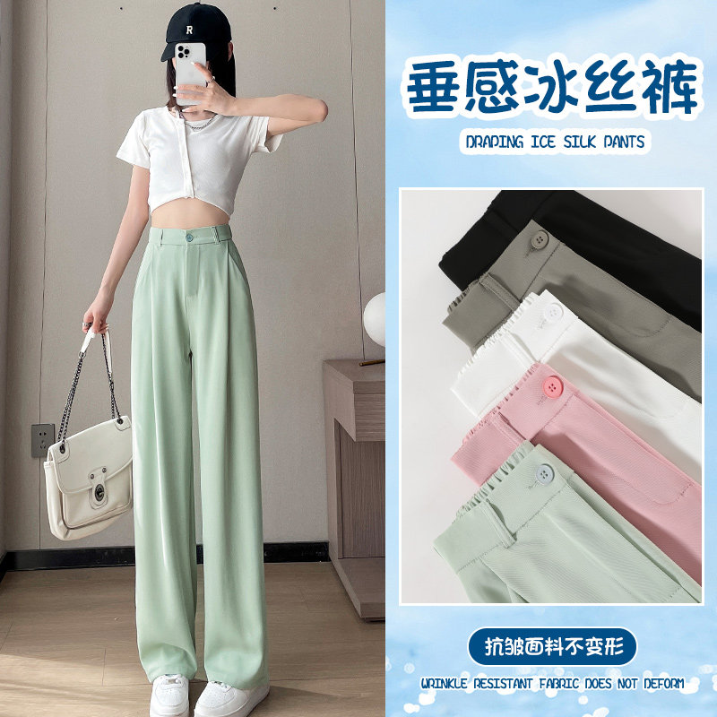 Шелковые тонкие штаны, комплект, костюм, высокая талия