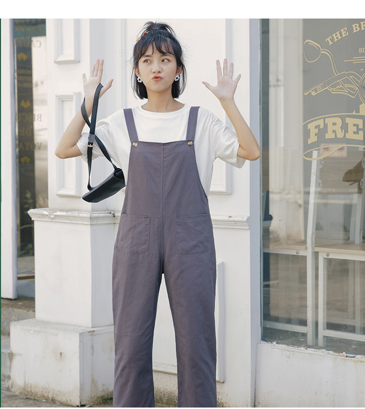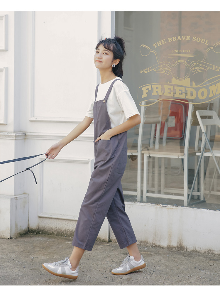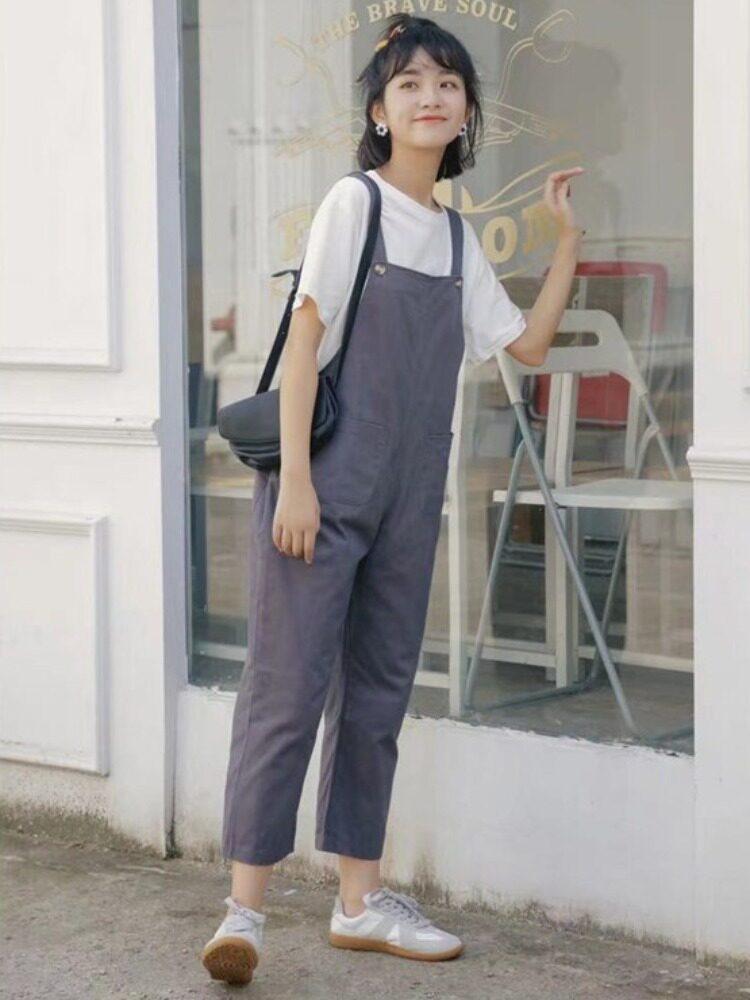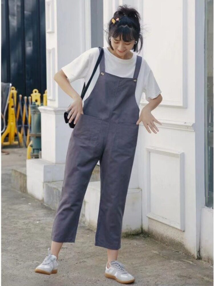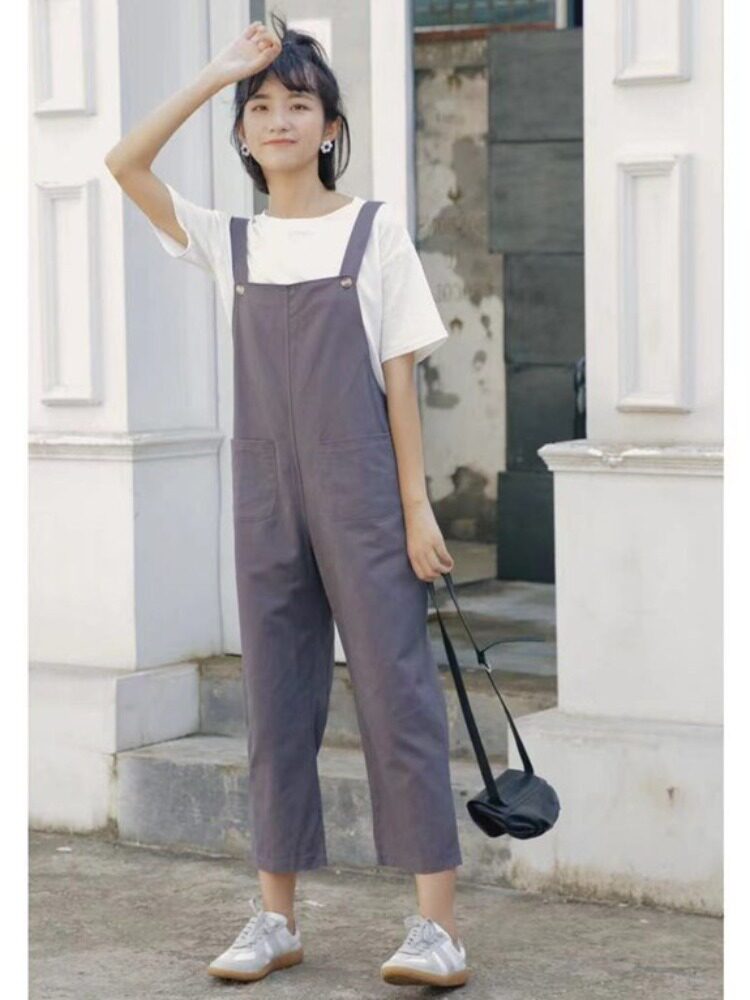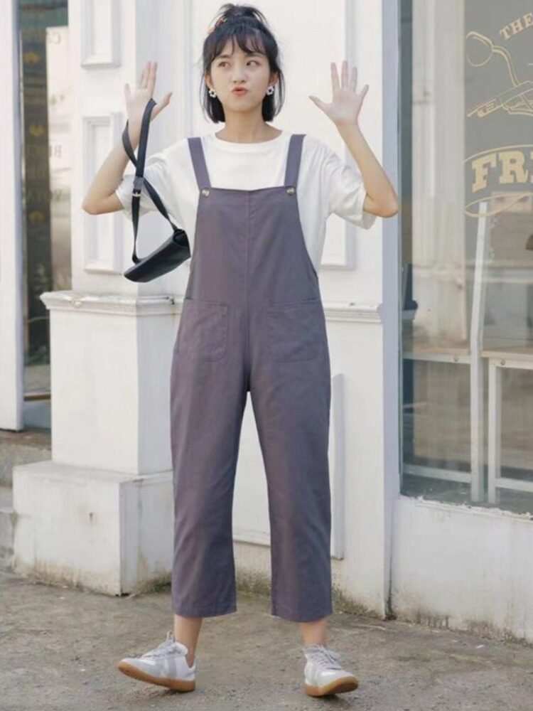 Летний комбинезон, универсальные штаны, в корейском стиле, свободный прямой крой, высокая талия