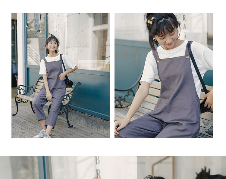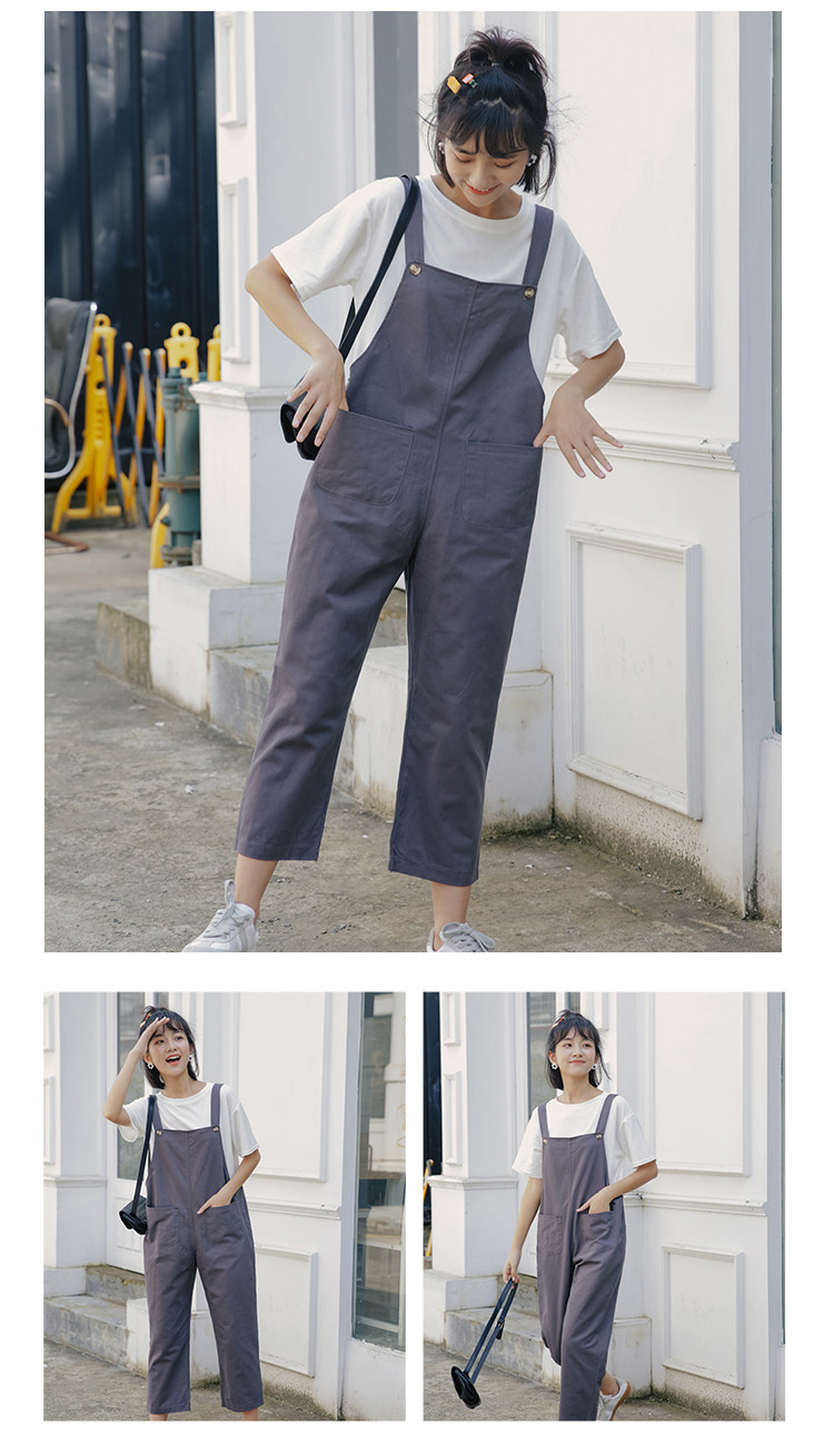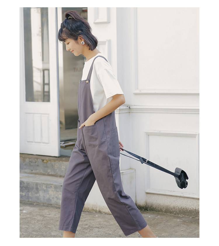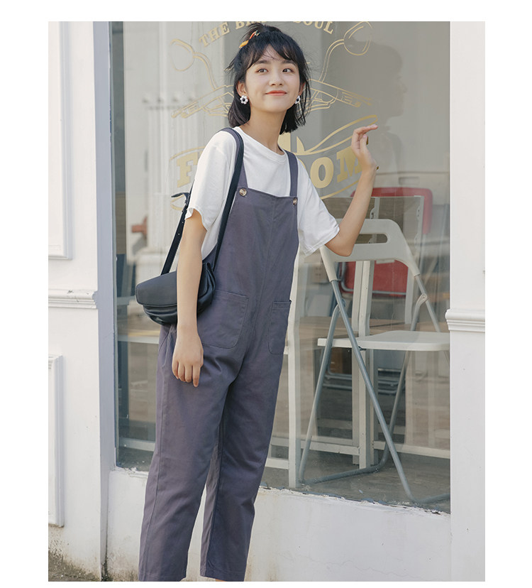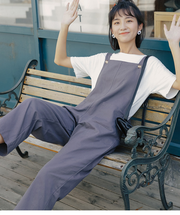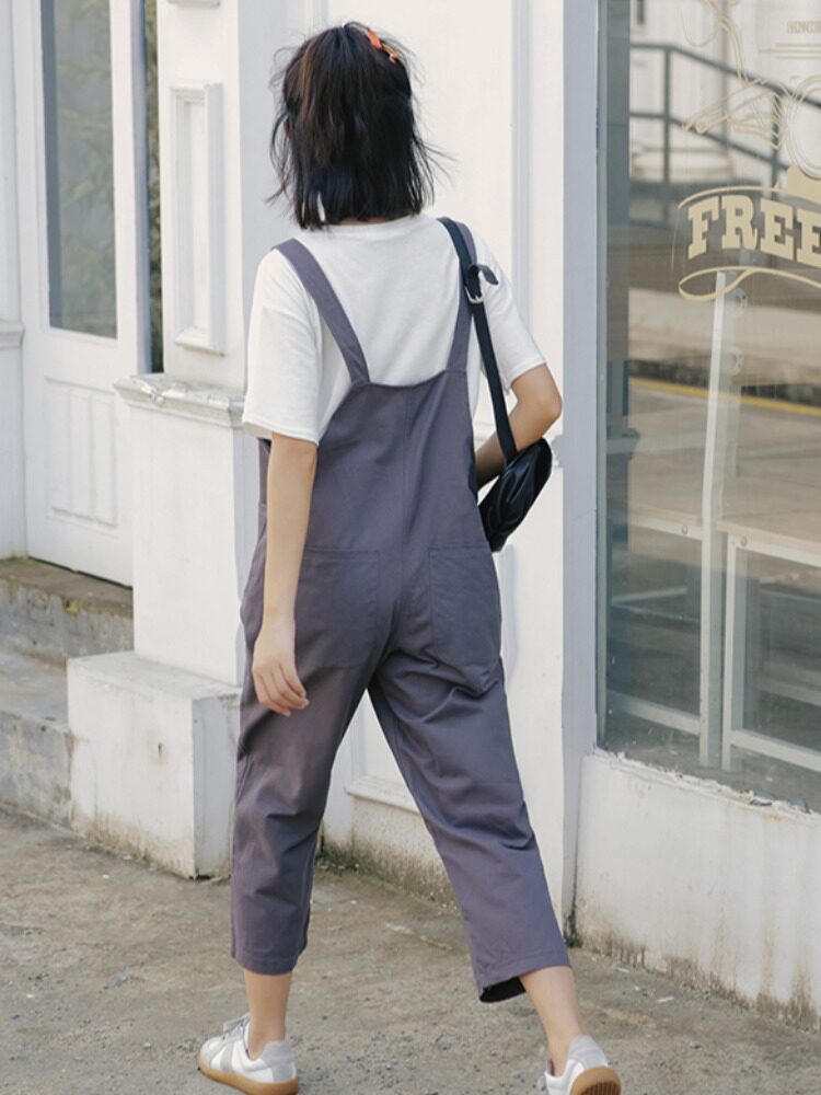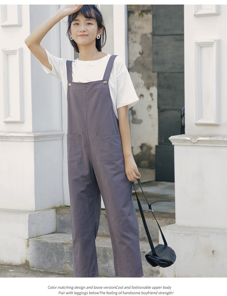 Летний комбинезон, универсальные штаны, в корейском стиле, свободный прямой крой, высокая талия