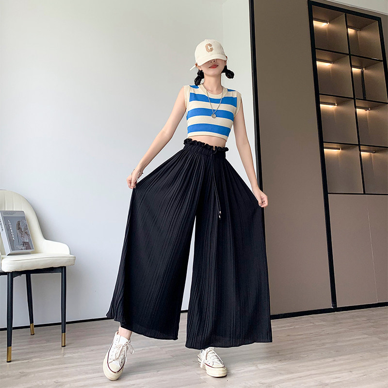 Шифоновая юбка в складку, штаны, большой размер, в корейском стиле, свободный крой