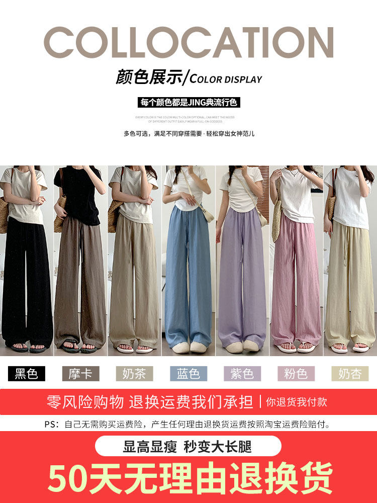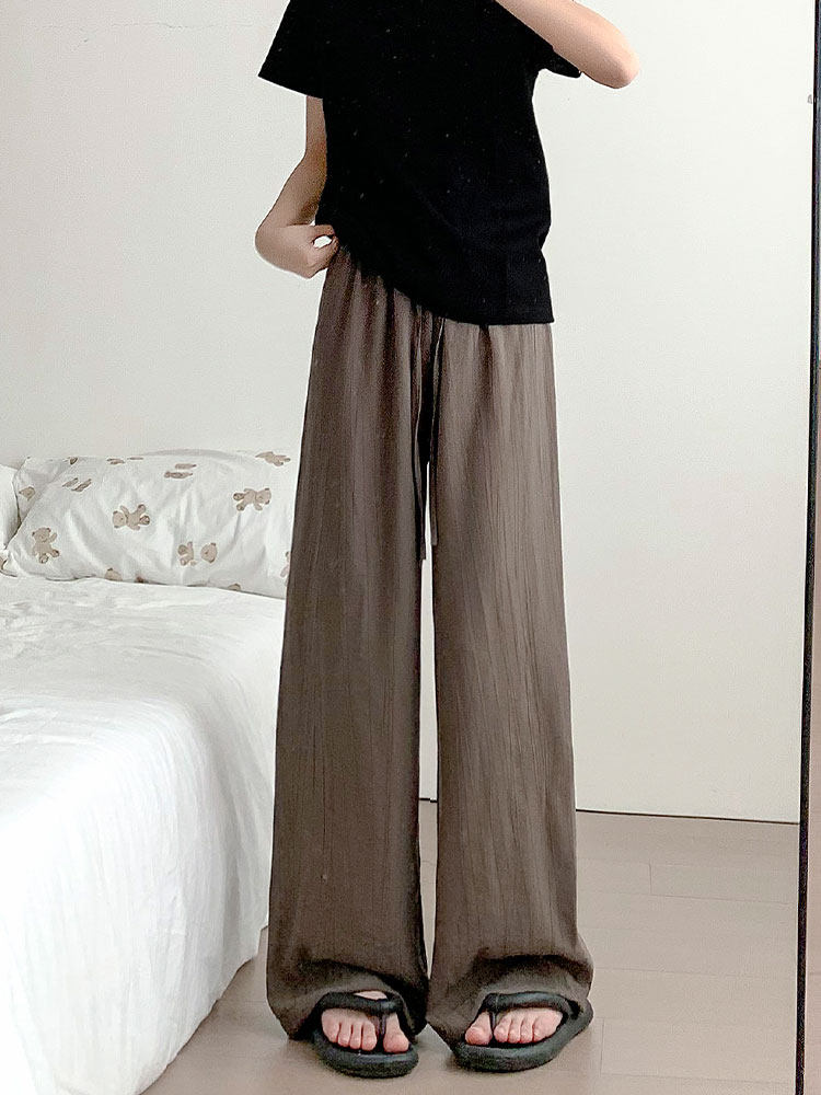 Шелковые тонкие штаны, высокая талия, свободный прямой крой, защита от солнца