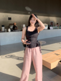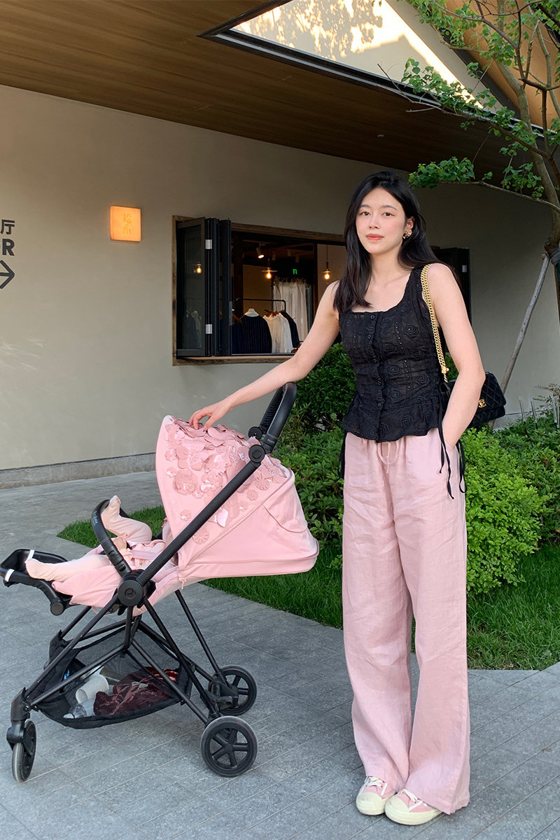 Розовые тонкие летние приталенные штаны, свободный прямой крой