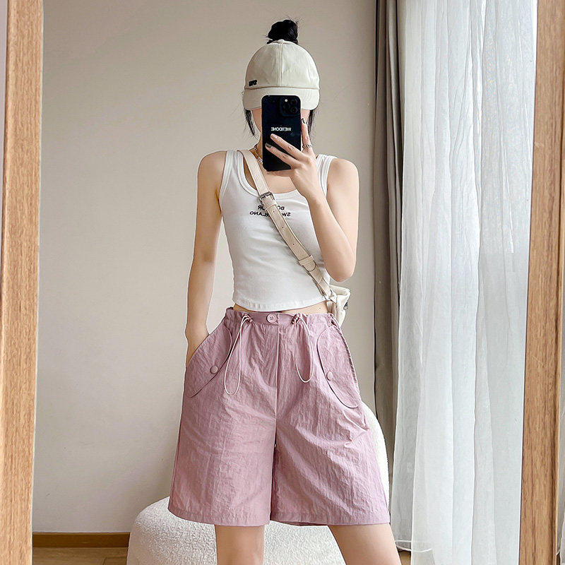Розовая униформа медсестры, шорты, тонкие быстросохнущие штаны для отдыха, высокая талия, свободный крой, в американском стиле