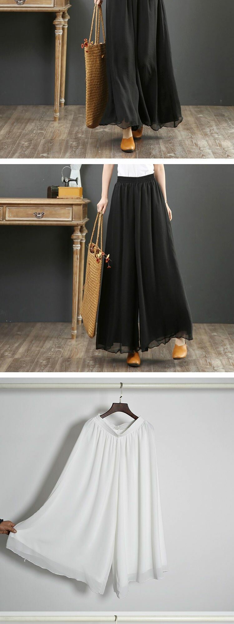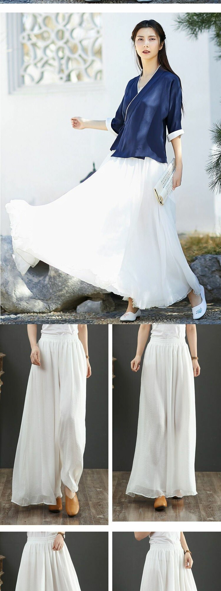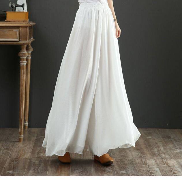 Белые шифоновые тонкие классические штаны, юбка для йоги
