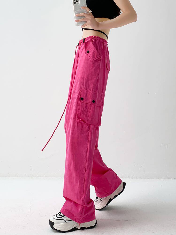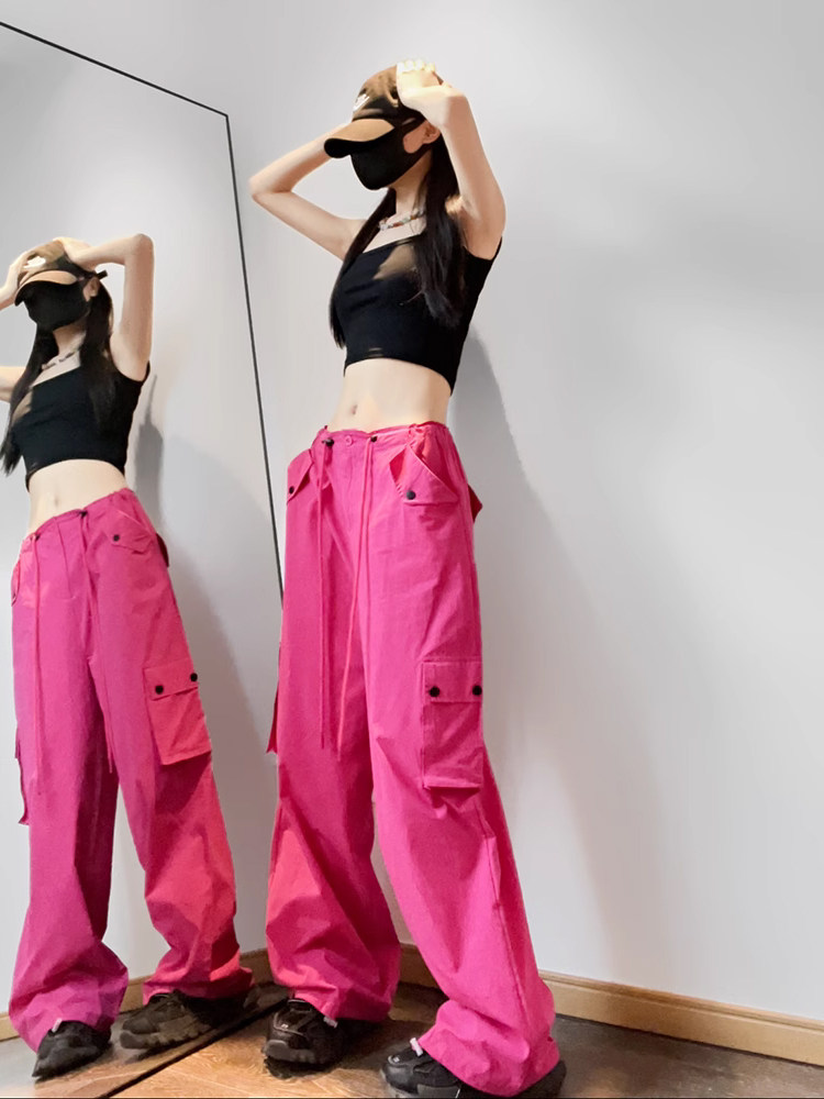 Красные летние дизайнерские тонкие штаны, в американском стиле, свободный крой, подходят для подростков, тренд сезона