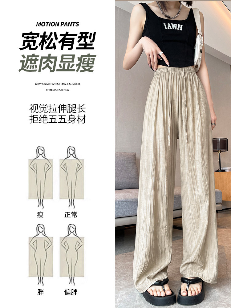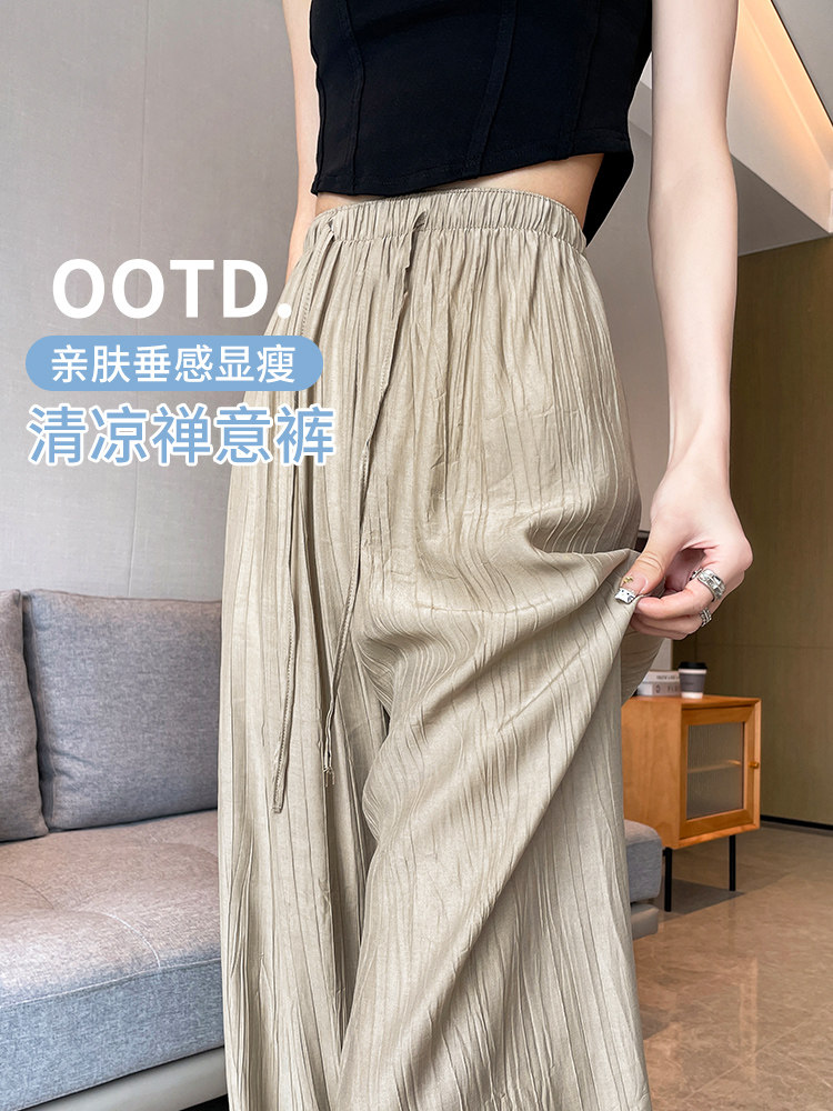 Шелковые тонкие штаны для отдыха, высокая талия, свободный прямой крой, стройный силуэт, по фигуре, подходит для подростков, защита от солнца