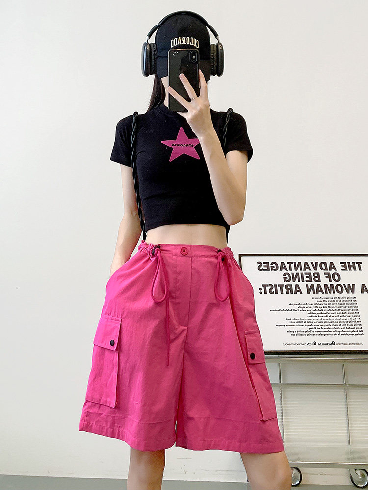 Красная униформа медсестры, шорты, тонкие спортивные штаны для отдыха, высокая талия, по фигуре, подходит для подростков, в американском стиле