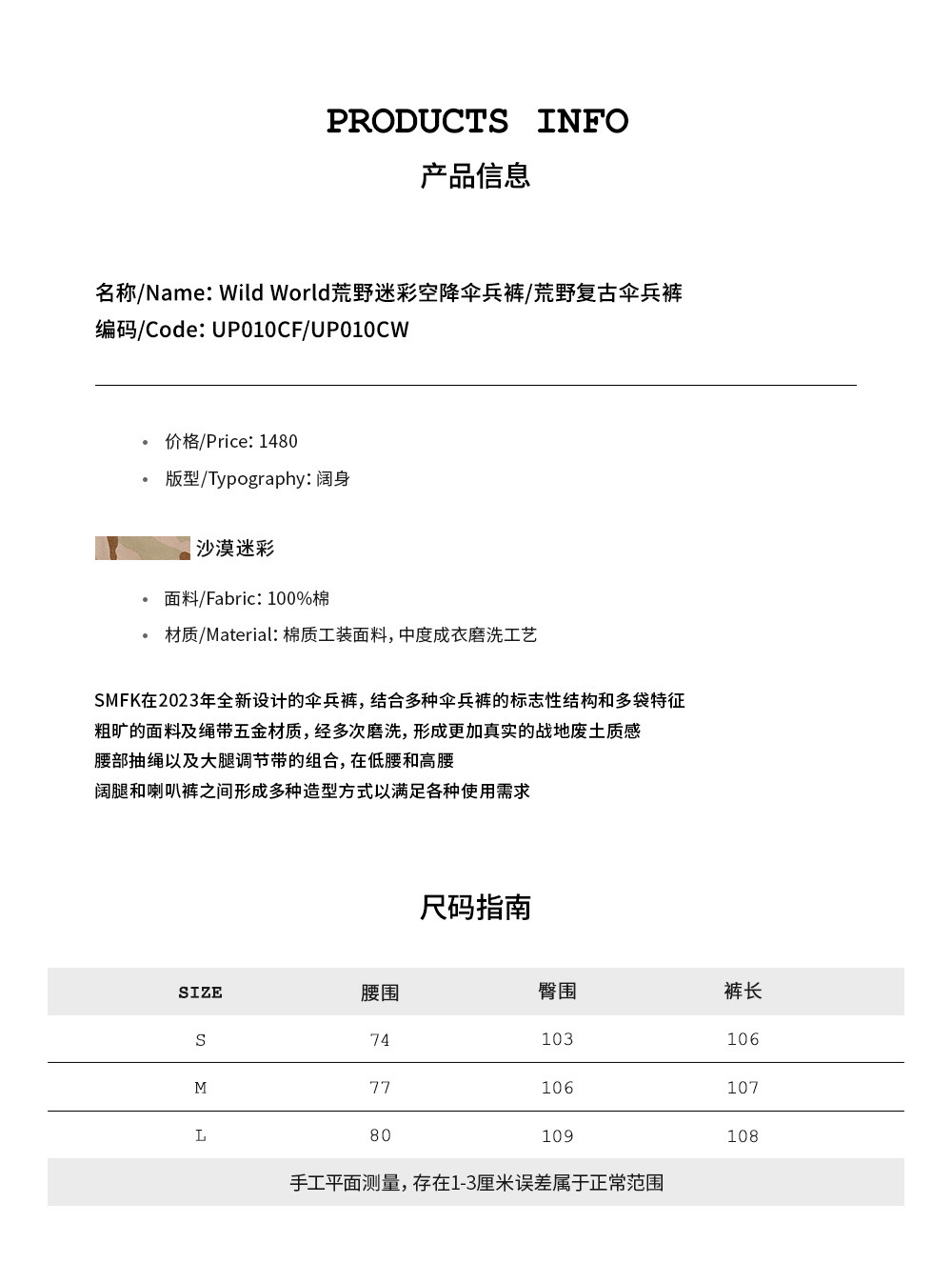 SMFK Дикий камуфляж в воздухе ретро -десантники прупер -штаны up010cf/cw ju jingyi's works worns spot ocless stock