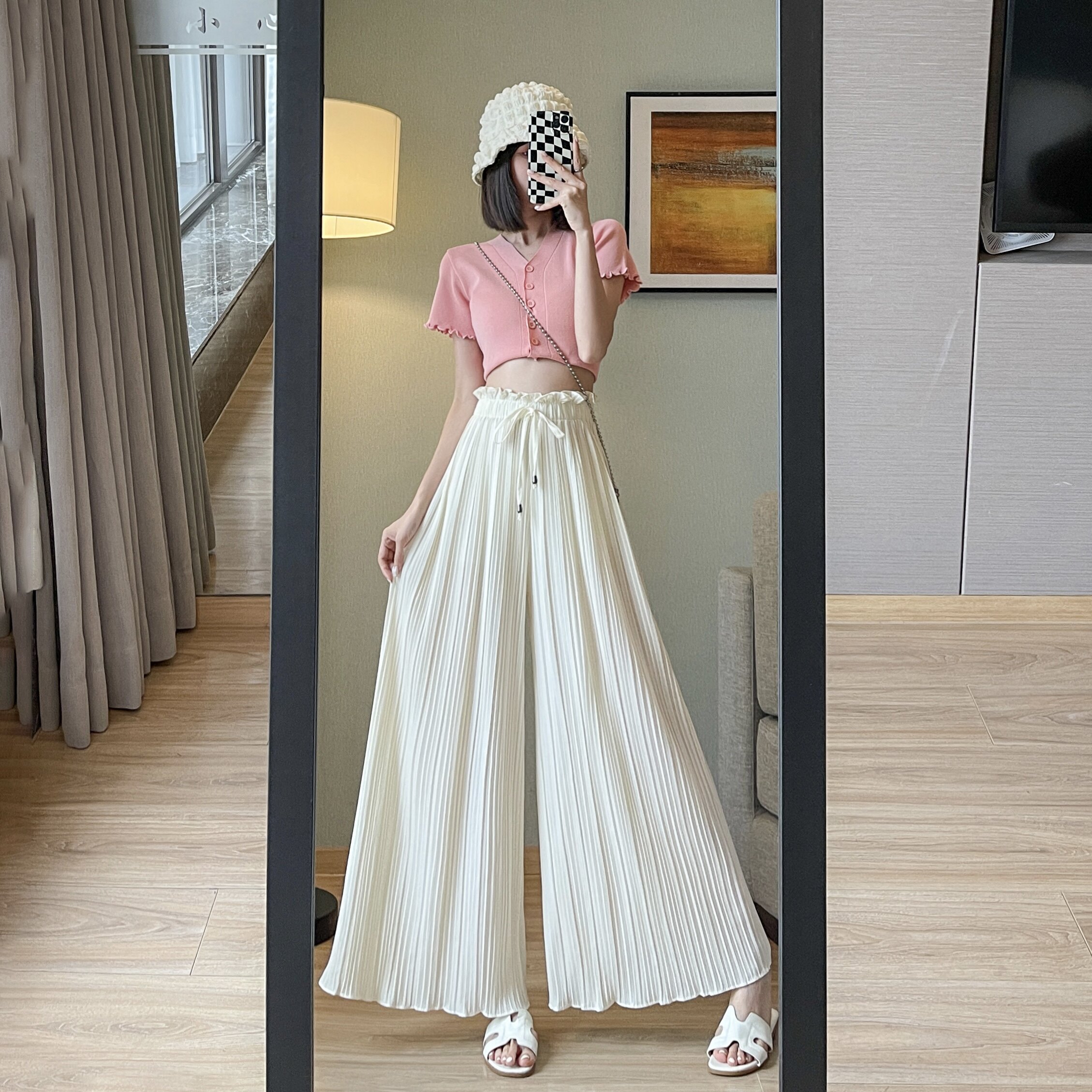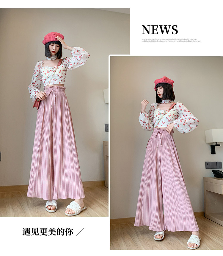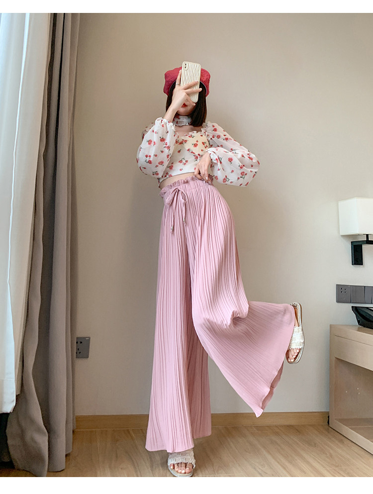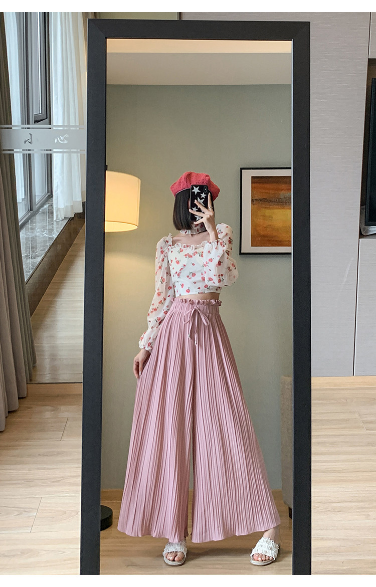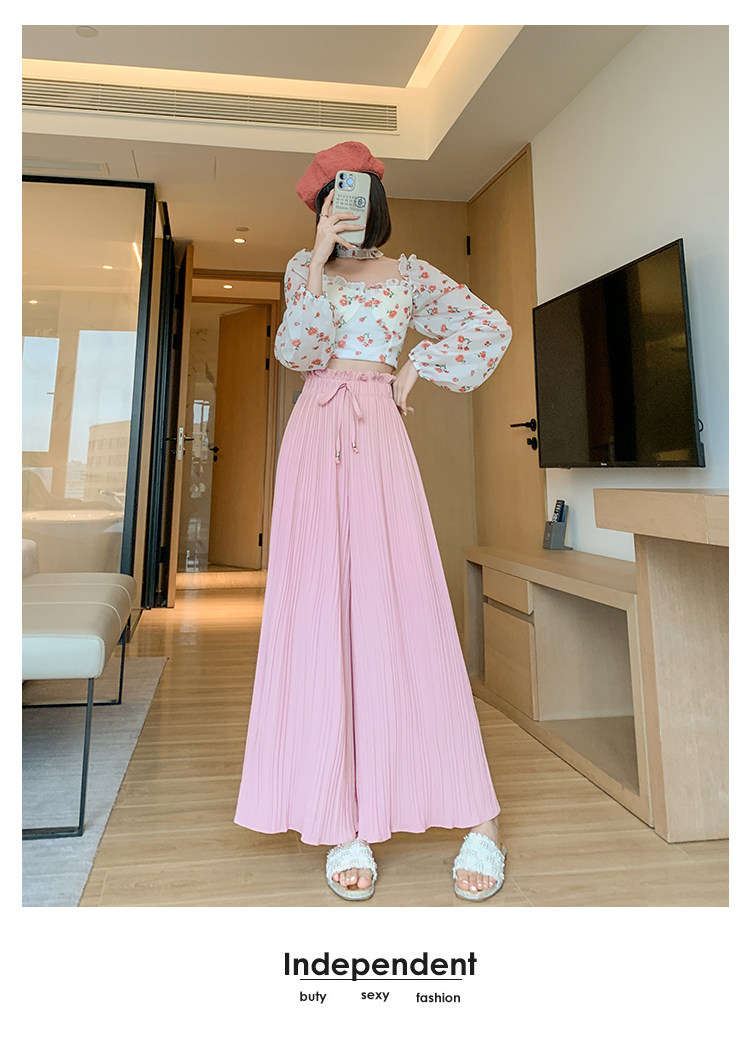 Розовая юбка, шифоновые штаны, высокая талия