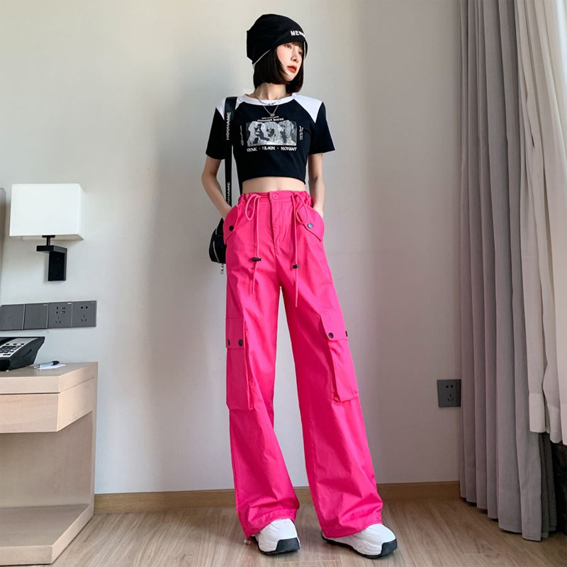 Красная униформа медсестры, ретро штаны, в американском стиле, оверсайз, высокая талия, свободный прямой крой, подходит для подростков