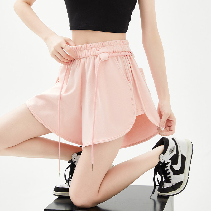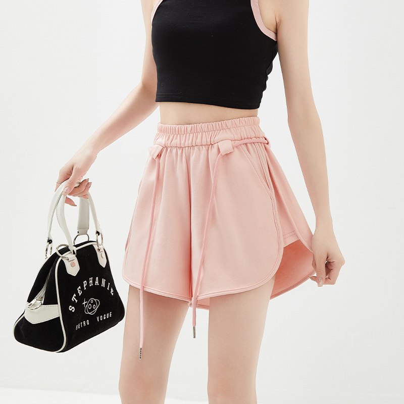 Розовые спортивные летние шорты, дизайнерские штаны для отдыха, высокая талия, тренд сезона, по фигуре, на шнурках