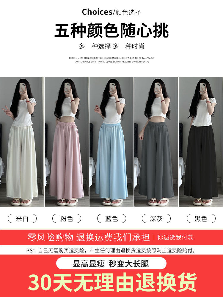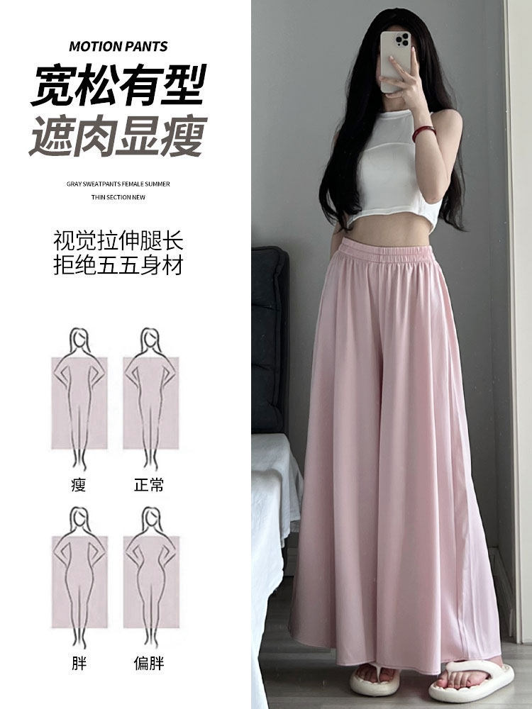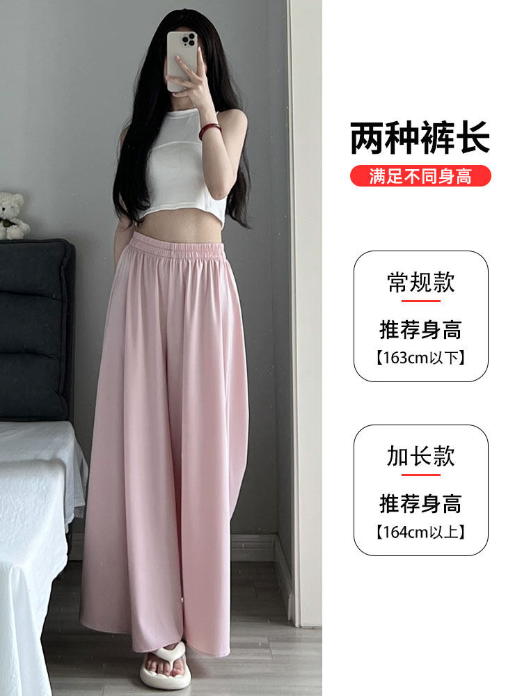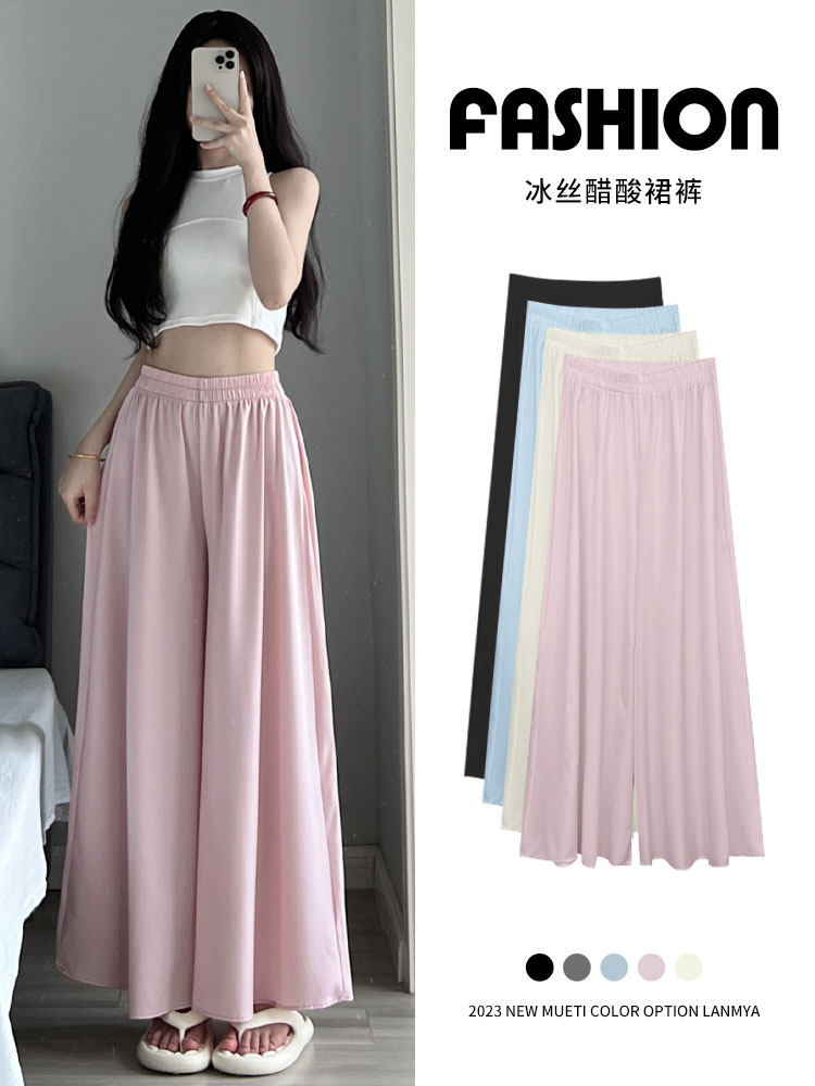 Розовые шелковые тонкие штаны, длинная юбка для отдыха, высокая талия, оверсайз