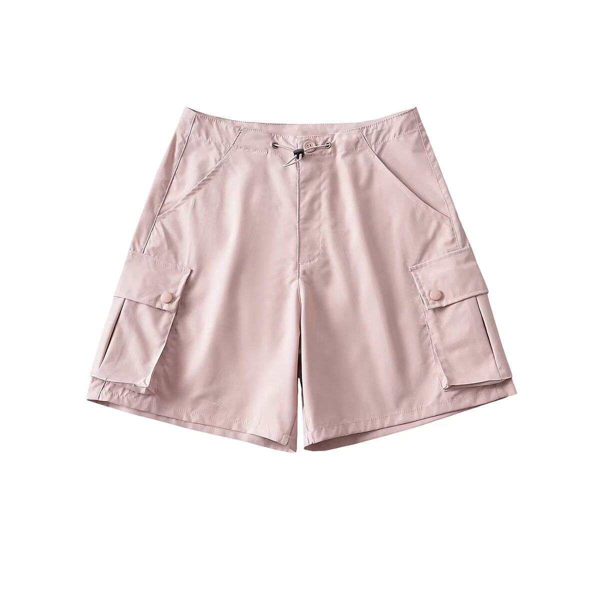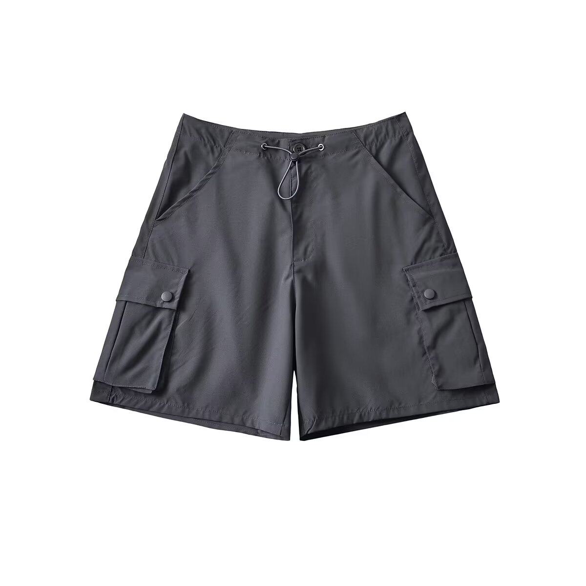 Шорты, штаны, приталенная быстросохнущая летняя одежда, в американском стиле, высокая талия, свободный крой, на шнурках