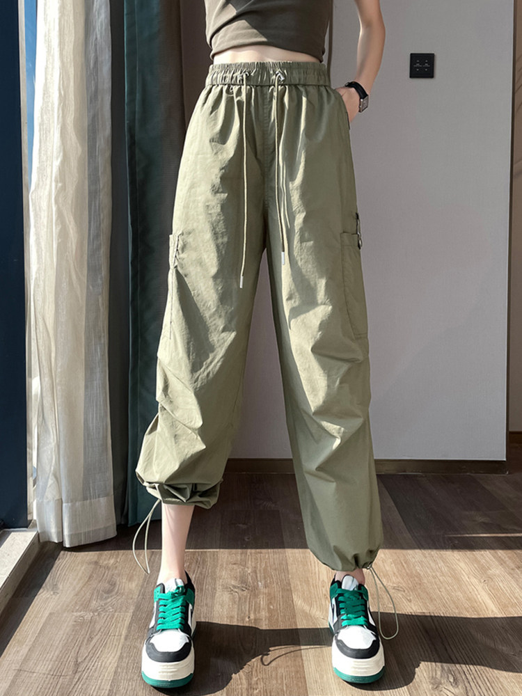 Быстросохнущие летние штаны, мешочек, в американском стиле, высокая талия